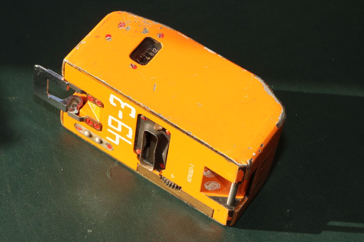 {MIG-23 Blackbox} Dank Miro ist mir noch ein nettes Exponat vor die Kamera gefallen: eine Blackbox vermutlich aus einer russischen MIG-23. Also nicht die ganze Blackbox, sondern nur die Filmbox. Aber immerhin.