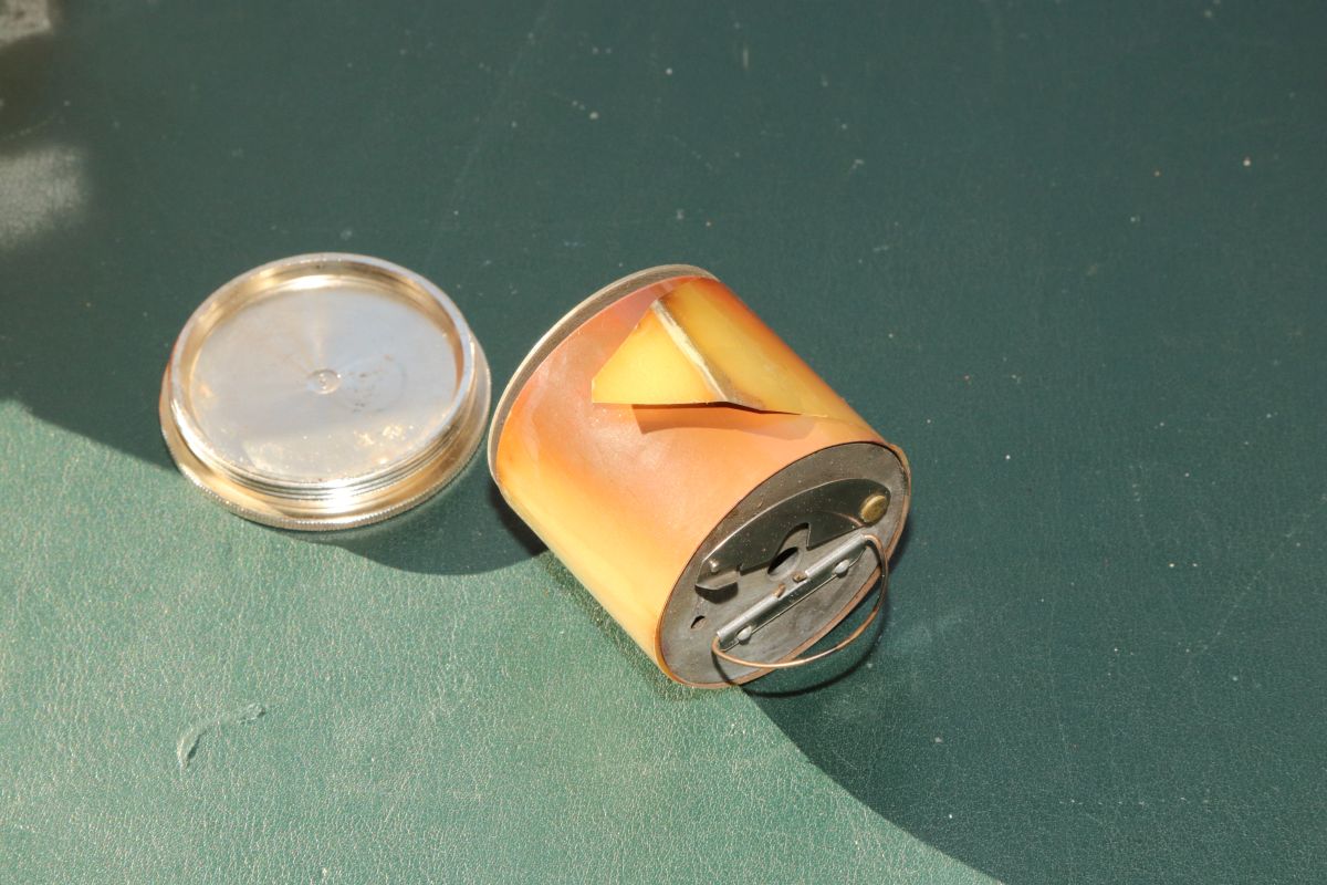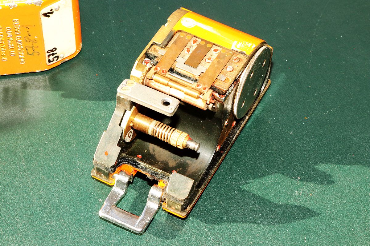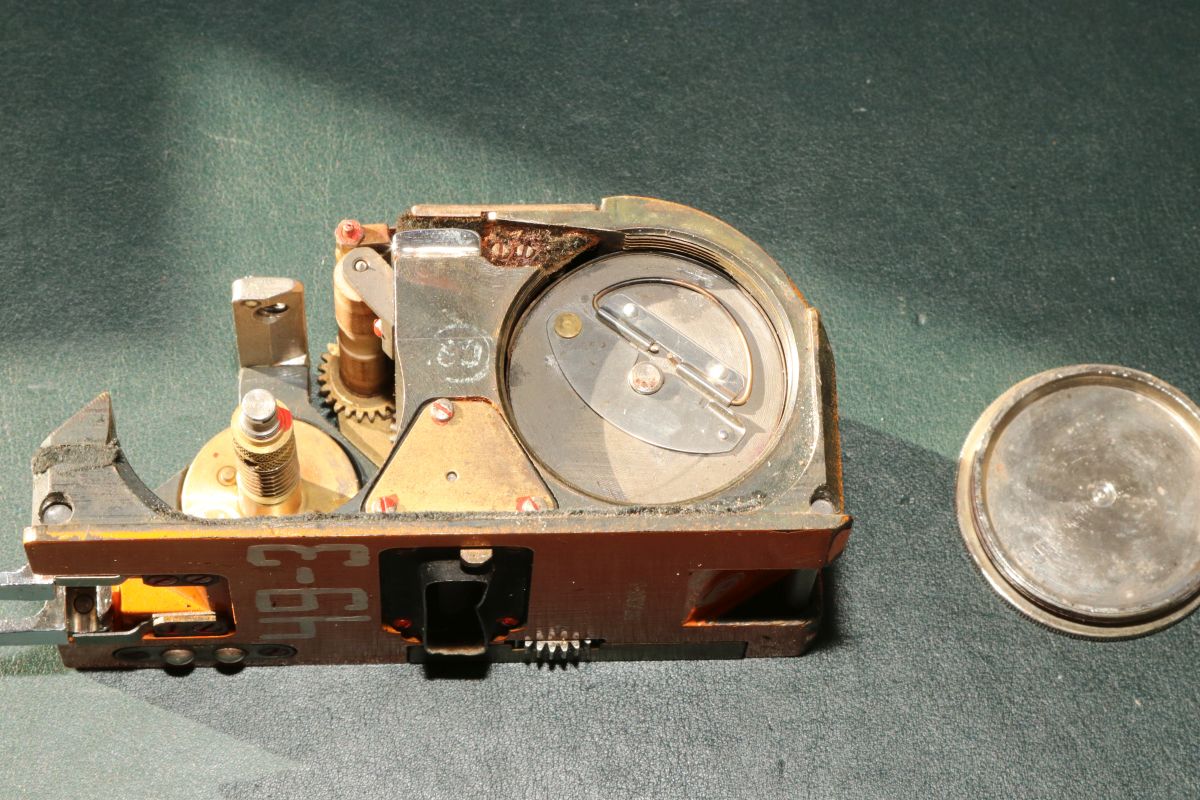 Durch diesen Schlitz findet die optische Aufzeichnung statt. Nach meinen Recherchen gab es dazu im eigentlichen Flugschreiber eine Batterie von elektrisch angetriebenen Spiegelgalvanometern, die wie ein Linienschreiber die Daten auf den Film belichtet haben.