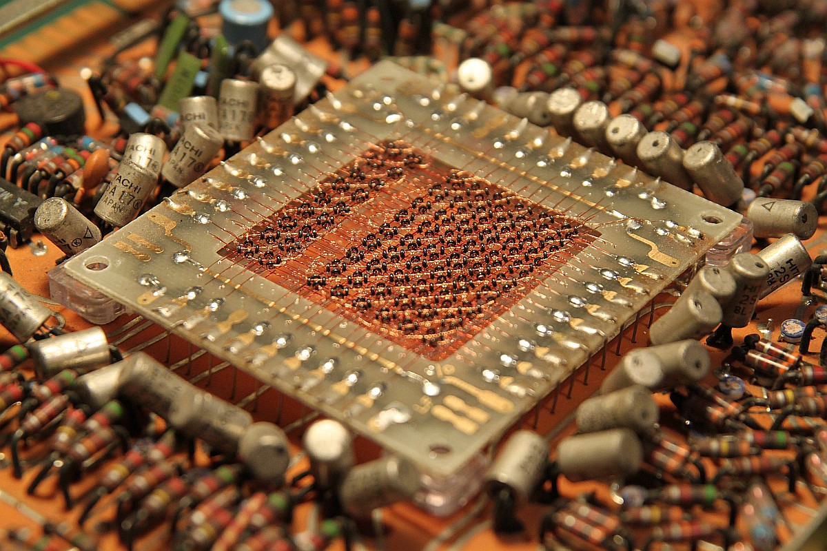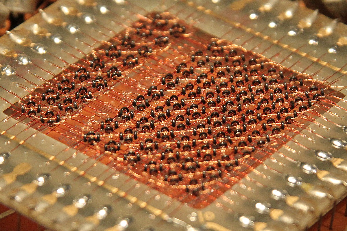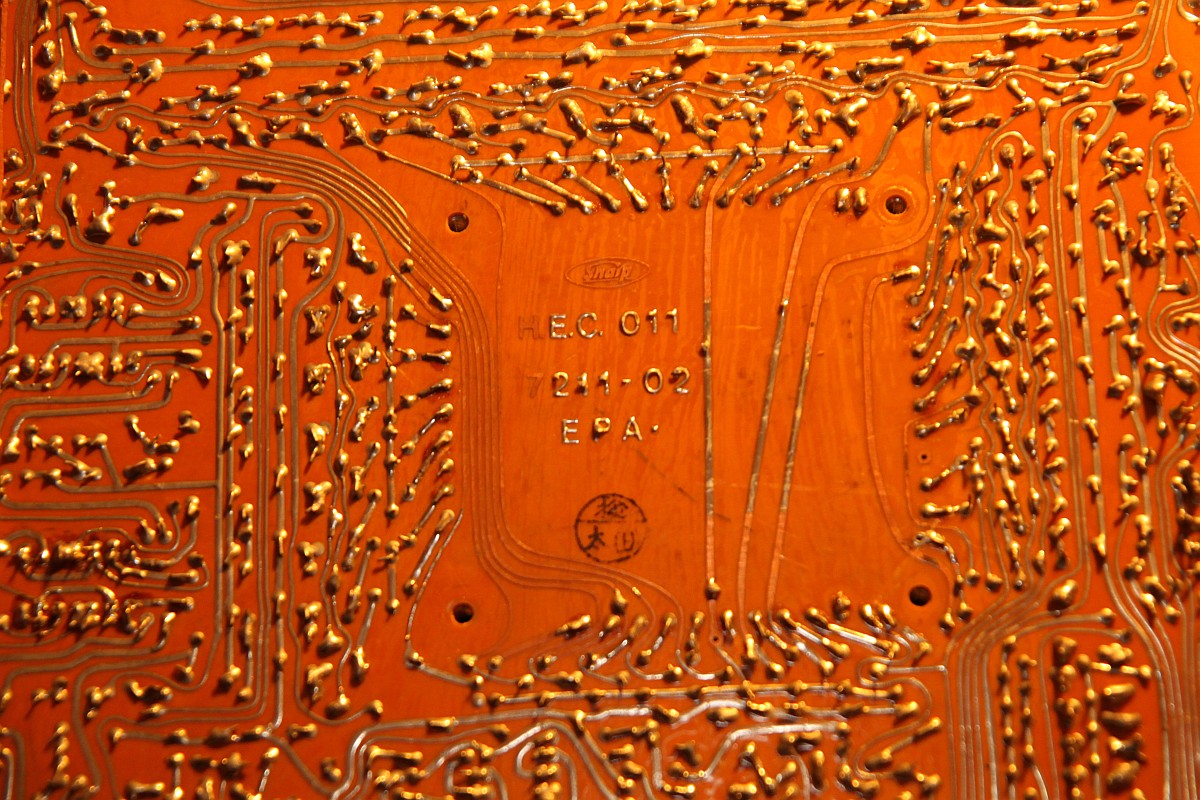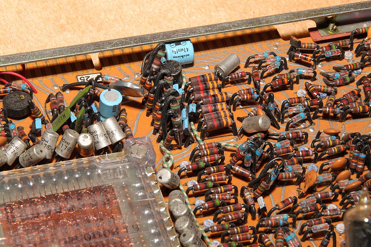 Was hier so aussieht, wie Tautropfen auf einem Spinnennetz, ist großzügig aufgetragener Schutzlack. Da bewegt sich nichts und es kann auch nichts kaputt gehen. Diese Rechner wurden noch für die Ewigkeit hergestellt...