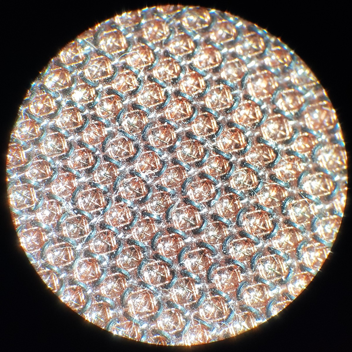 Ein Blick durch das Mikroskop zeigt leider nur wenig Details, da die Kernspeicherebenen mit einer flexiblen gummiartigen Masse getränkt sind.