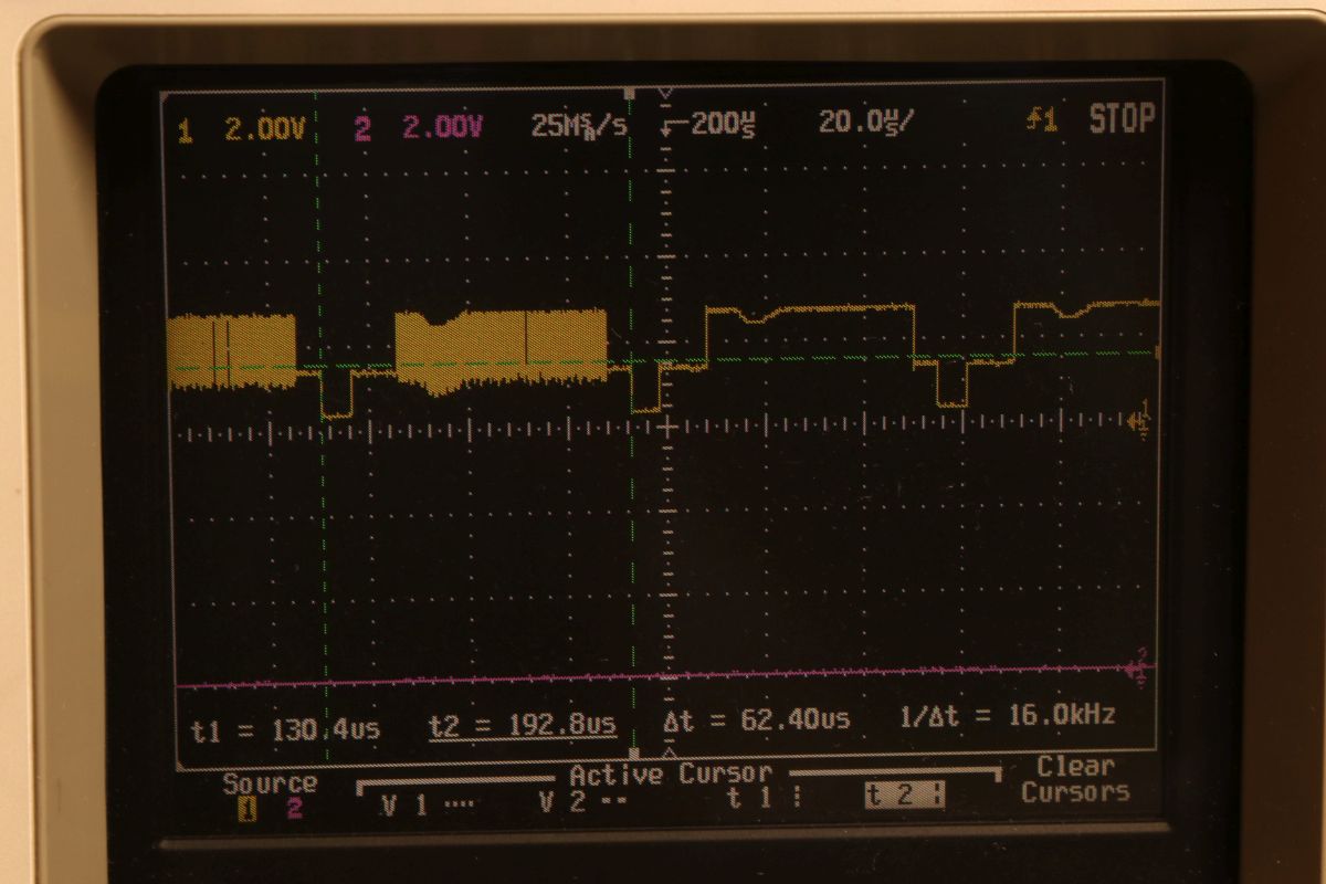 Der Monitor hier ist deutlich geduldiger mit Videosignalen außerhalb der Spec. Zumindest H-Sync fängt er einwandfrei, V-Sync nur mit Mühe. Da muss ich mal näher in der Video-Generierung nachsehen.