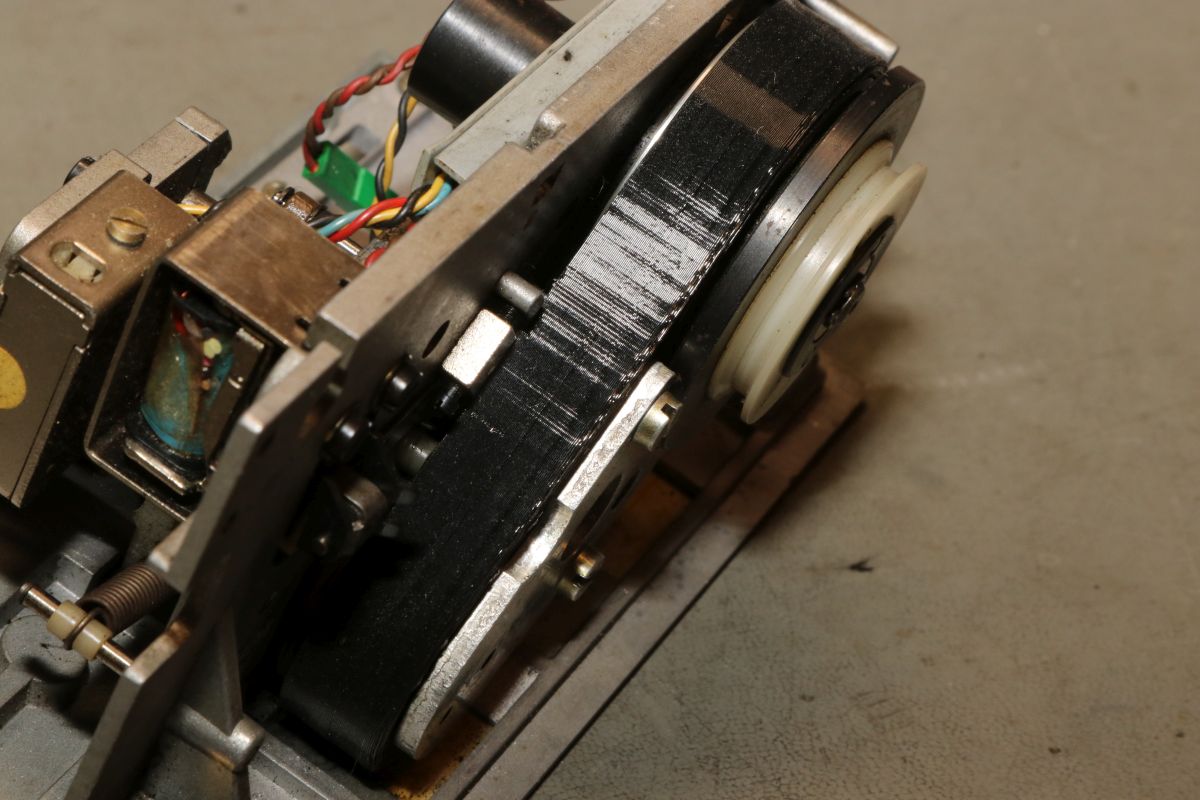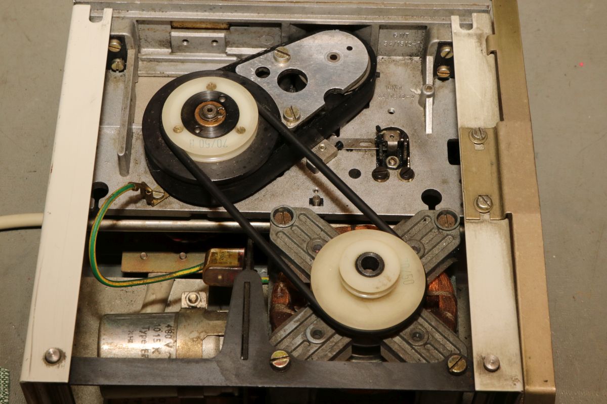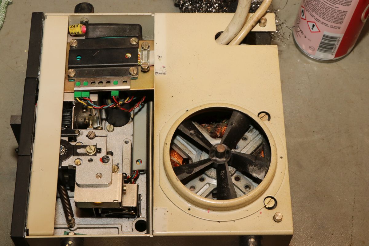 {GNT 3406} Manche Reparaturen erscheinen auf den ersten Blick wenig attraktiv und vermutlich auch nicht lohnend. So erreichte mich ein Lochstreifenstanzer GNT 3406, der seit vielen Jahrzehnten sein Dasein als Datenfütterer in einem CNC-Umfeld fristete. Nicht lecker, aber für das Umfeld normal: ein halbes Jahrhundert Schneidöl und Späne... Diagnose: das Gerät stanzt nicht, einer der Antriebsriemen ist defekt. Stimmt, der ist nicht nur defekt, der ist nicht mehr existent. Da muss ich mich erst mal in den Mechanismus einfuchsen: der große O-Ring als Antrieb zwischen Motor und Stanzeinheit funktioniert noch einwandfrei, aber der Antriebsriemen zwischen Schwungscheibe und Stanzmechanismusmitnehmer ist weg. Und das ist kein Standard-Teil, sondern ein dicker Flachgummiriemen mit Nut in der Mitte... Die Demontage gestaltet sich interessant... alles ist irgendwie geschraubt und verriegelt. Das dauert. Die Elektronik sieht auch nicht mehr so gut aus. Schöne solide Microcontrollertechnik - aber ich sehe... ... scheintote RIFAs. Gottseidank hier im Kleinspannungsbereich. Der Motorlüfter ist nicht mehr original, aber er tut noch seinen Dienst, etwas flügellahm allerdings. Der Trafo ist auch schon nicht mehr original und wird gerade mal von einer Schraube gehalten, die andere lümmelt irgendwo in der Gerätewanne rum. Die Elektrik ist gewagt simpel. Das lässt sich aber alles gut demontieren Hier ist der Netzspannungs-RIFA. Dringend Zeit für einen Ersatz, bevor es knallt und stinkt! Die beiden Schräublein auf der Rückseite klemmen den Stanzmechanismus im Gehäuse - das war mal eine geschickte Montagemethode. Mittlerweile ist das so verklebt und verkantet, dass es eine Viertelstunde dauert, bis ich das Mistding ausgebaut habe... Der Steckverbinder ist nicht sehr sicher gesteckt... Sodele - das Teilmodul ist schon mal separiert. Ich versuche, den Mechanismus zu verstehen. Der Motor läuft andauernd, Schwungscheibe und Mitnehmerrolle laufen ebenfalls permanent. Über ein Relais ausgelöst springt ein zweiarmiger Mitnehmermechanismus aus seiner Ruhelage zwischen Mitnehmerrolle und Gummiriemen und vollzieht genau eine Umdrehung, in der der Stanzer ausgelöst wird. Dann befindet sich der Mitnehmer wieder in Ruhelage ohne Kontakt zum Riemen. Trickreich und nicht sehr dauerstabil... Hier ist die gut gelagerte Mitnehmerrolle: Der Stanzmagnet: 9 Magnetauslöser, von denen einer dauerhaft arretiert ist (Mitnehmerlochspur). Die Metallplättchen schieben sich zwischen Auslöser und Stanzdorn, wenn das Loch gestanzt werden soll. Wenn sich das Plättchen nicht dazwischen schiebt, läuft der Auslöser, der alle 9 Löcher gleichzeitig bedient, bei diesem Loch in's Leere. Ich bin gespannt, ob ich dieses Konglomerat wieder zusammengebaut bekomme... Der erste Versuch, den Originalriemen mit mehreren konventionellen Flachriemen zu ersetzen, schlug grandios fehl. Einzelriemen rutschen einfach nach oben und unten von den Rollen und haben auch nicht genug Friktion für den Mitnehmer. Es wird zwingend ein kombinierter Riemen mit Nut benötigt. Nächster Schritt: Riemendruck mit PUR... {GNT 3406 - mal ordentlich am Riemen reißen...} Schön, wenn man Freunde hat, die exzellent mit 3-D-Druckern umgehen können. Ich kann das nicht, aber ich weiß, wen ich fragen kann. Herzlichen Dank, Ralph!!! Aber alles der Reihe nach! Vorab habe ich schon mal die aufwändige Mechanik grundgereinigt und geschmiert, wo es nötig war. Hier mal die beeindruckende Fliehkraftkupplung: Kann mal geputzt werden... Weitere Versuche mit Gummiriemen und Kleben waren nicht von Erfolg gekrönt. Da müssen Profis ran! Profis, die mit schnell hingekritzelten Handskizzen umgehen wollen... Und die daraus einen 3-D-Druck mit flexiblem Kunststoff fertigen. Der "Spaß" hat wohl 4 Stunden gedauert. Passt wie angegossen - und das Beste: es funktioniert!!! Der Riemen ist zwar nicht ganz so weich wie Gummi, aber er läuft rund, leise und die Mitnehmermimik funktioniert damit einwandfrei! Da kann ich doch gleich den Rest noch putzen, schmieren und wieder Stück für Stück zusammensetzen. Die Stecker sind brav nummeriert. Nach diversen Versuchen habe ich auch die trickreiche Mechanik wieder verstanden... Alles ist irgendwie mit Federn oder Schrauben verbunden und verklemmt... Fast fertig (zumindest das mechanische Oberteil): Und die Plexiglasscheibe ist auch gereinigt und montiert. Jetzt fehlt nur noch die Elektronik - hier müssen erst mal alle neuralgischen Kondensatoren getauscht werden. |