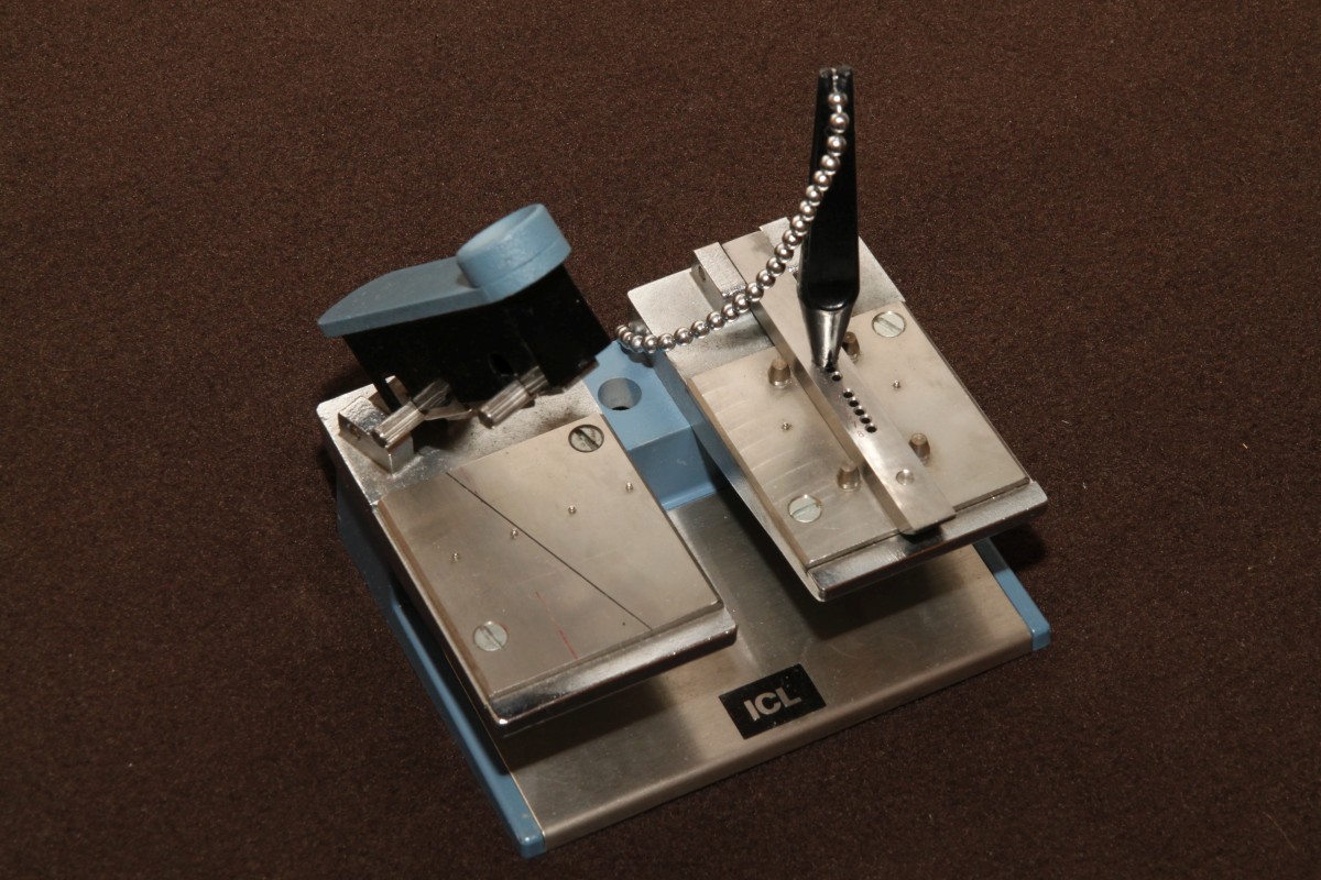{Lochstreifen Handstanzer} Unter dem Motto "Früher war mehr Konfetti" habe ich wieder Zuwachs bekommen. Ich sammle ja jeden Scheiß, wenn es nur mit Arcade - oder aber mit musealer Computertechnik zu tun hat. Meine Neuzugänge: zwei Handstanzer für die Reparatur und Korrektur von Lochstreifenbändern. Der erste ist sehr einfach gehalten, dafür kann man mit ihm Daten- und Indexlöcher stechen. Mühsam... Und nein, ich habe den nicht selber gefräst! ;-)