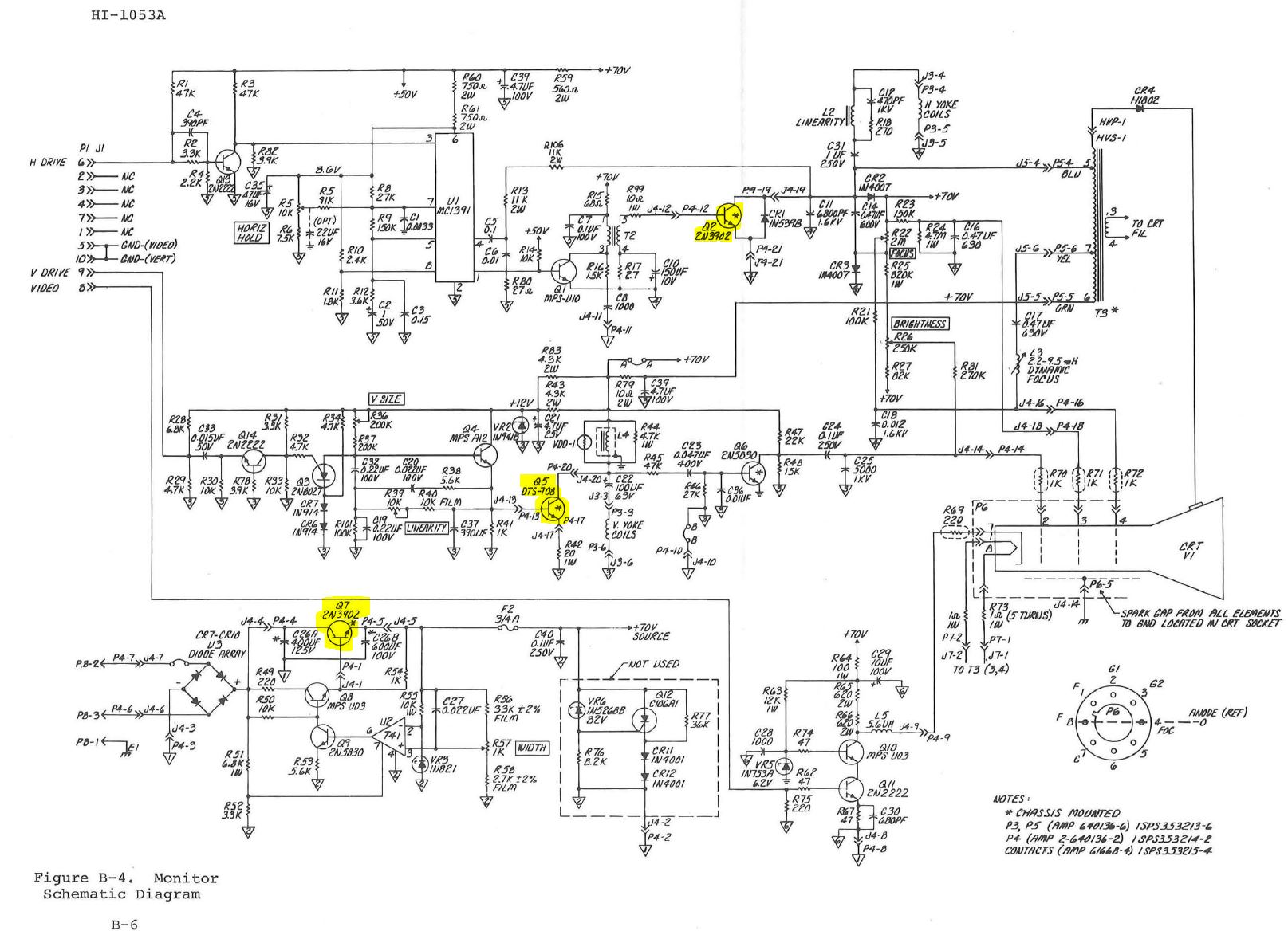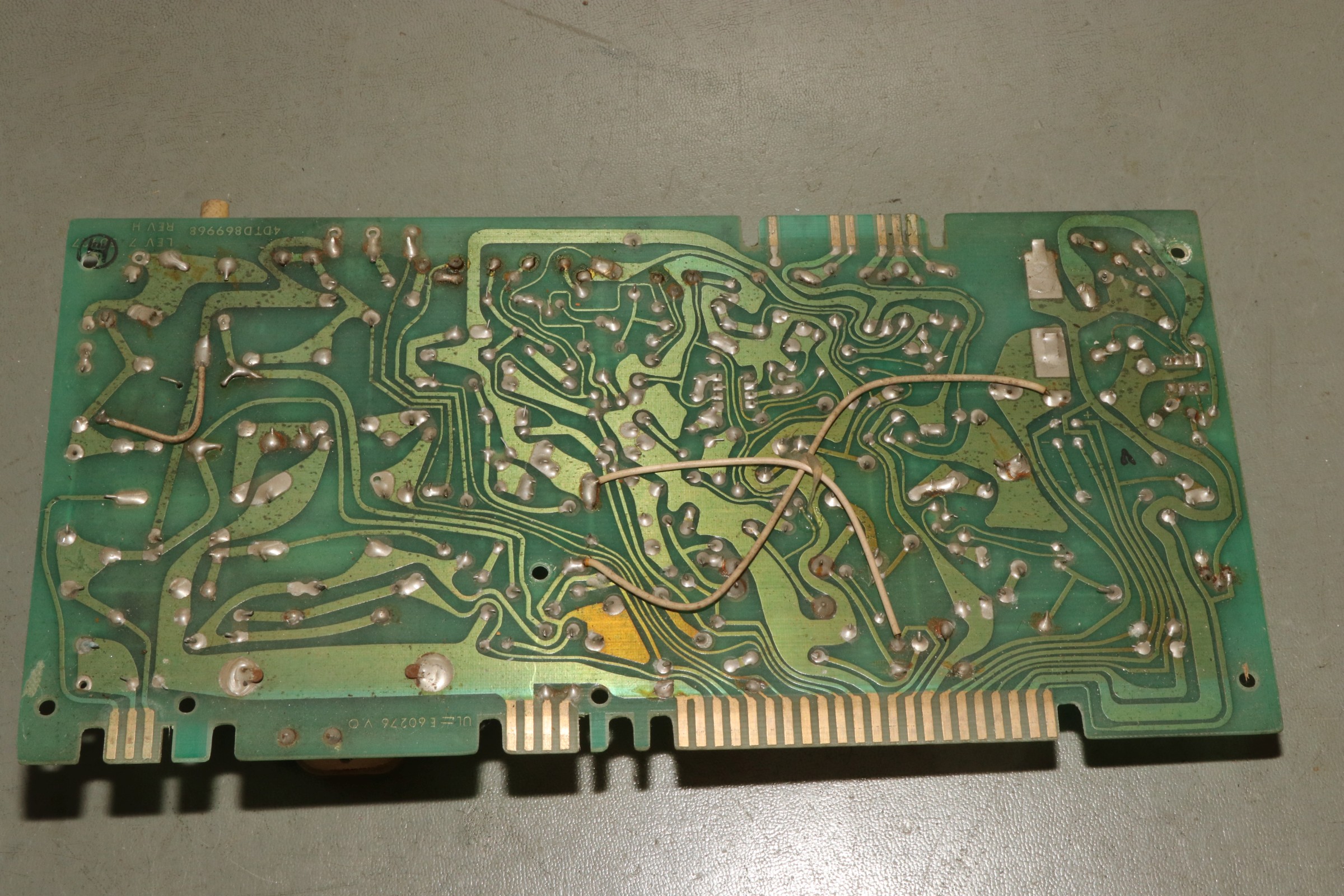 {Hazeltine 1500 Monitor} Hier nun die Fortsetzung von Hazeltine 1500 Terminal - Die Reparatur wird so umfangreich, da habe ich beschlossen, diesen Artikel mal auszulagern. Der Monitor ist in sehr schlechtem Zustand... Die Platine ist nicht umfangreich, dafür korrodiert und mit vielen defekten Bauteilen bestückt... Ober- und Unterseite sind als hoch auflösende Fotos hinterlegt! O.K., der erste Transistor fällt mir schon mal entgegen... ...da hat schon wer versucht, mit Feile und Lötzinn zu "reparieren" - leider ein Transistortyp, der schon lange nicht mehr zu bekommen ist. Da werde ich wohl Ersatz finden müssen. R15 brannte beim Einschalten effektvoll ab... Das fängt ja gut an. R79 ist auch nicht mehr so ganz frisch... Der Elko hat nicht nur eine Beule, der hat sogar schon die Hosen runtergelassen, weil's so heiß war... Die Elkos müssen alle raus und neu gemacht werden. Eigentlich geht an dem Monitor nichts mehr so richtig... Die erste Handvoll Leichen - hoffentlich passen die bestellten Transistor-Ersatztypen... Kommen wir zum zweiten Teil des Chassis' - der Zeilentrafo ist nicht mehr befestigt, völlig klebrig und verdreckt... Die Befestigungsspange ist gerissen - das wirkt sich nicht gut auf den Betrieb aus, da wird der Luftspalt zu groß! Igitt... die Hochspannungsdiode ist demontierbar, es scheint sich ein Isolieröl verteilt zu haben, einfach nur eklig. Gut, dass ich das noch gesehen habe: die kleinen gefalteten Plastikplättchen sorgen für einen definierten Luftspalt zwischen den beiden Kernhälften! Das hält nicht mehr... Gut, dass ich auch Silberhartlot im Hause habe! Das sieht doch gleich viel wertiger aus und hält! Das Thema Zeilentrafo ist hoffentlich erfolgreich erledigt - jetzt geht es an die Prüfung der Leistungstransistoren. Hier die beiden Transistoren für Horizontal- und Vertikalablenkung... Der einzelne Transistor ist der Linearregler für das 70V-Netzteil. Der hat nicht nur den falschen Typen, er ist sogar komplett durchlegiert und liefert 2,7 Ohm zwischen allen Anschlüssen. Das ist suboptimal. Die H- und V-Transistoren haben auch ganz seltsame Typenbezeichnungen, funktionieren aber noch... Der linke Transistor 1SPS331848 ist eine Hazeltine Type, die nirgendwo dokumentiert ist, der rechte Typ SJ4810 findet sich in keinem Motorola Datenbuch wieder... sehr suspekt. Q7 und Q2 sind laut Schaltplan die gleichen Typen - 2N3902. Nur Q5 ist ein DTS-708, den bekommt man nirgends mehr und ich habe auch keine Daten... aber der Hazeltine Ersatztyp geht ja noch. Dann vermute ich mal, dass SJ4810 einem 2N3902 entspricht - und der 1SPS331848 ist dann die kundenspezifische Bezeichnung für DTS-708. Jetzt warte ich mal auf die bestellten Ersatzteile und hoffe, dass danach alles gut wird! {Das Linearnetzteil} Die ersten Ersatzteile sind gekommen... wer hat schon 3W-Widerstände auf Lager, wenn er sonst Mikroprozessorsysteme bastelt... Der Ersatztransistor muss eine Tauglichkeit noch beweisen - ich hab ihn nach bestem Wissen und Gewissen rausgesucht: 150V, 1,5A, miese Stromverstärkung hFE 40... Ach ja, das Pinning stimmt nicht... Die primären Pufferelkos haben die falsche Bauform, es gibt vermutlich keine Zwillingselkos mehr... Egal: Zweikomponentenkleber macht es möglich. Naja, der 741 war auch völlig platt... Also neu: Und nachdem ich den baugleichen Transistor aus der Ablenkstufe in der Längsregelung eingesteckt habe: Cool: das 70V-Linearnetzteil geht wieder - die Spannung lässt sich über das Poti von 60-90V regeln, damit stellt man übrigens auch die Bildbreite ein. Und dann hat mich noch interessiert, ob man einem durchlegierten Transistor sein Leiden ansieht... Ja..., das sieht man gut... Jetzt muss ich auf die Ersatztransistoren warten... |