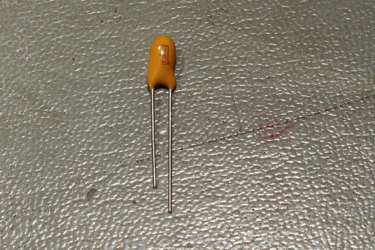 {IBM 5150 - Tantal-Kur} Etwas KnowHow zum Einstieg: Tantalkondensatoren sind feste Elektrolytkondensatoren auf Basis von Tantal und Tantaloxyd als superdünne Isolierschicht. Diese Isolierschicht ist extrem empfindlich, ähnlich der Isolierung des Gates bei Feldeffekttransistoren. Wenn die Isolierschicht durch mechanischen Streß oder thermischen Streß oder Überspannung Defekte bekommt, dann erhöht sich der Strom zwischen den Elektroden lawinenartig. Plopp. Die Dinger mögen außerdem keine schnellen Stromanstiege und sind damit eigentlich in Versorgungsspannungszweigen ungeeignet... Originalheimer, der ich bin, hab ich mir mal neue Tantalkondensatoren kommen lassen - der Optik wegen - und damit die Erben auch was zu reparieren haben... 10µF 16V.