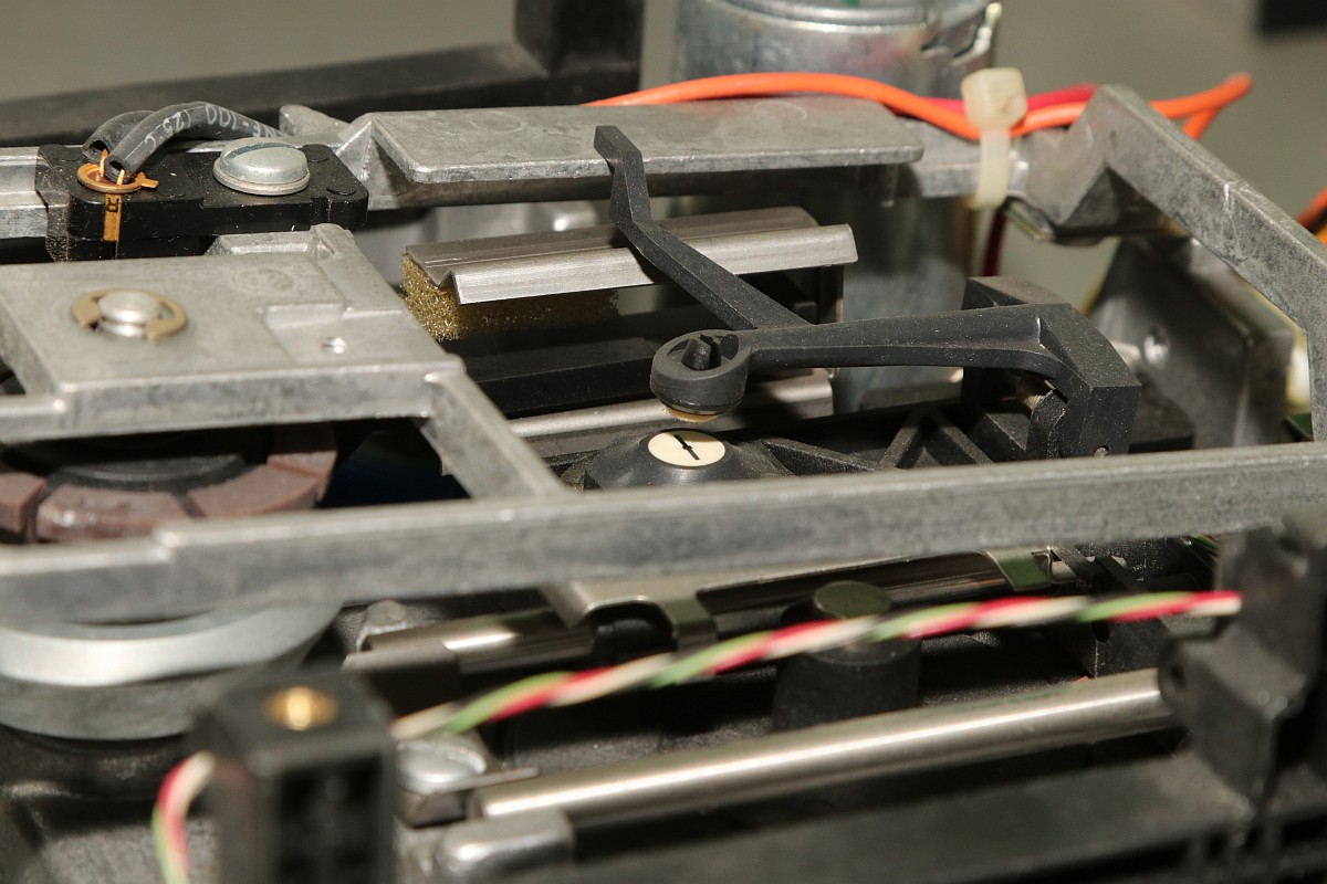 Die Kopfpositionierung wird über eine Spiralscheibe gesteuert:
