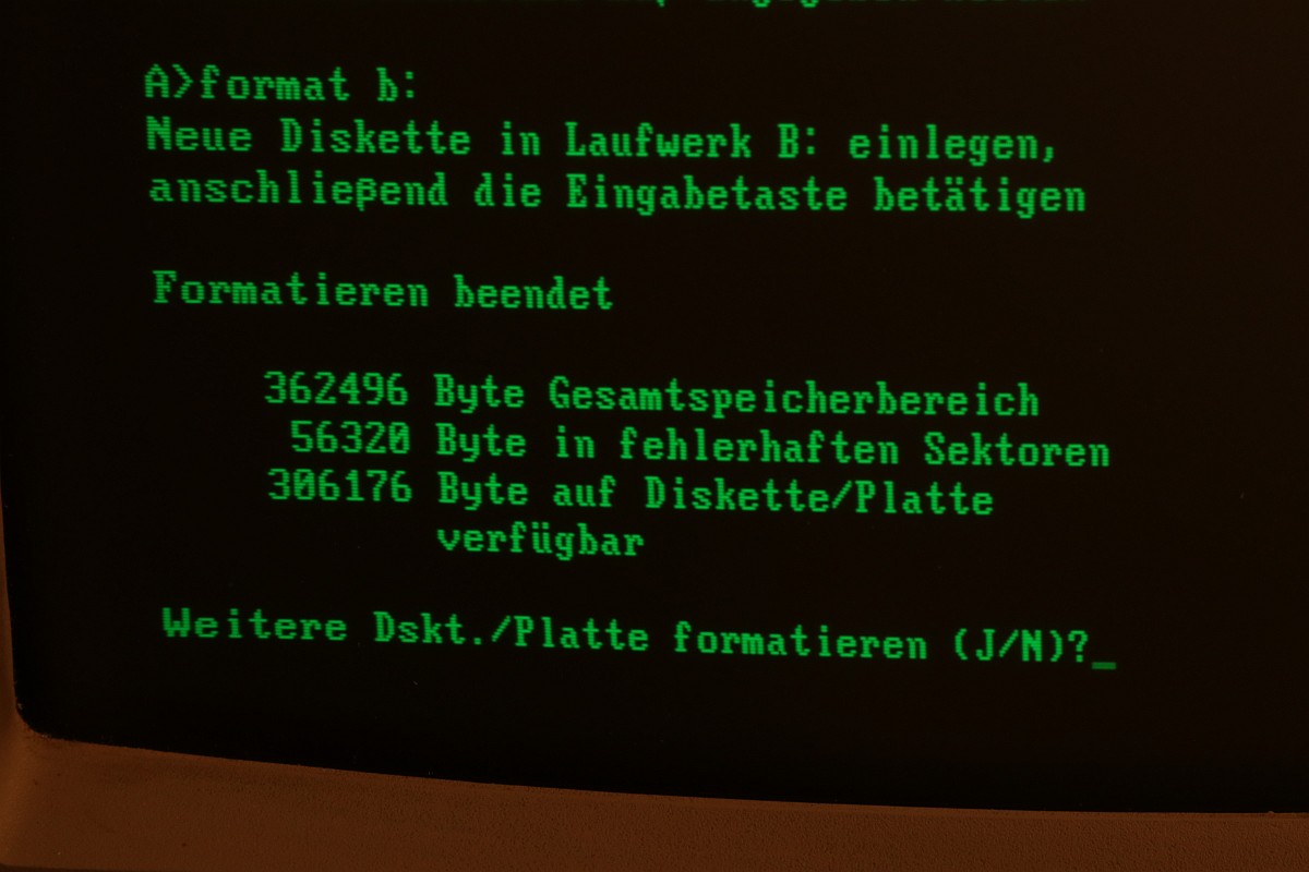 Der Versuch, auch mal eine Diskette auf 360k zu formatieren, ist nicht wirklich erfolgeich... ich weiß nicht, ob es am Rechner, an den verwendeten Disketten oder am Laufwerk liegt, also warte ich erst mal auf die originalen Komponenten!