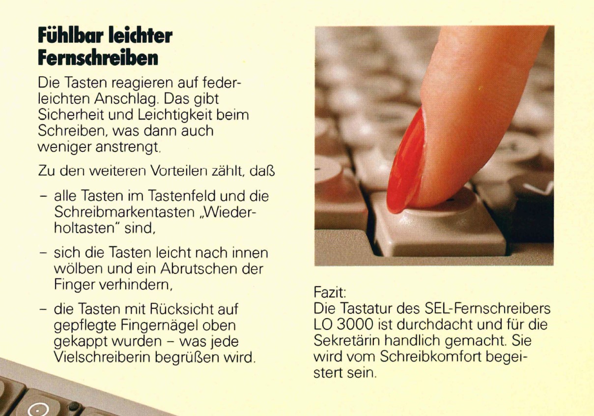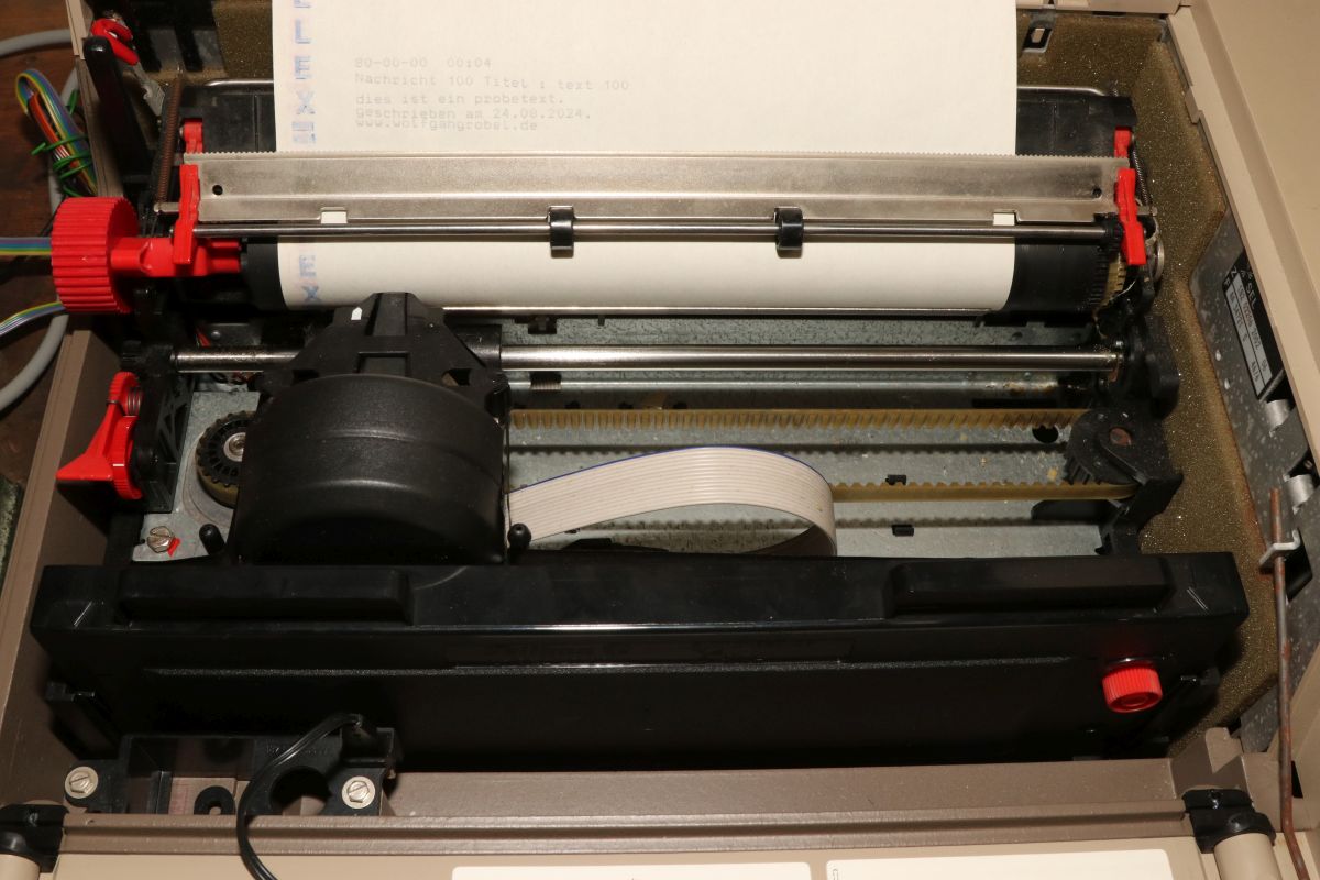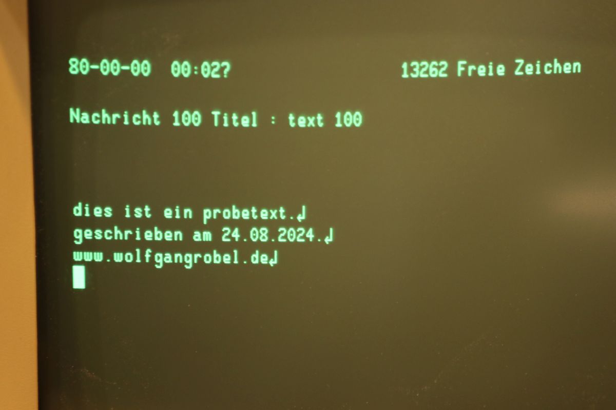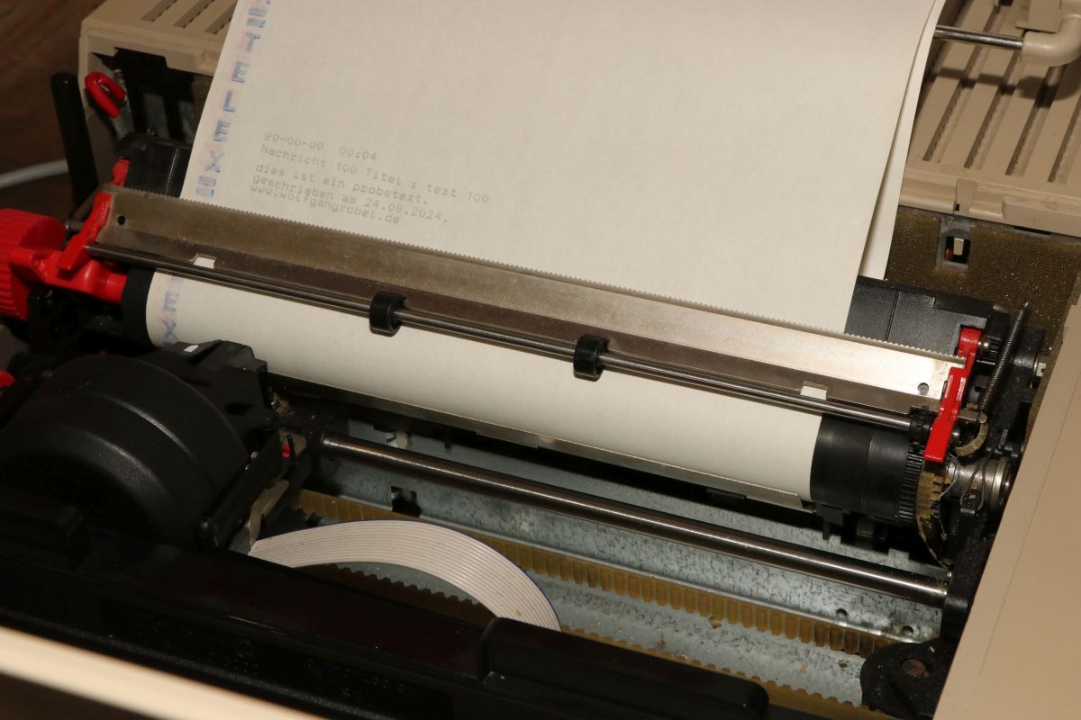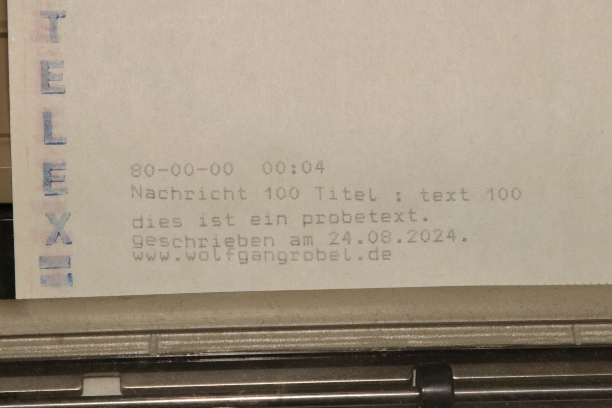 {SEL LO 3000 Fernschreiber} Von Florian aus Ludwigsburg habe ich eine ganz tolle Spende erhalten: einen SEL LO 3000! SELs letztes Fernschreibermodell, schon voll elektronisch, wahlweise mit Diskettenlaufwerk oder Lochstreifeneinheit - oder wie hier: mit nichts davon. Dieses Gerät kann sich schon gar nicht mehr so recht entscheiden, ob es denn ein Textverarbeitungssystem oder ein Fernschreiber sein möchte. Der Bildschirm zeigt super scharf und mit extrem weichem Scrolling die getippten Texte an und bietet diverse Editier- und Abspeichermöglichkeiten. Von hier bis zum PC mit Word ist es nur noch ein kleiner Schritt... Die vielen Sticker sind noch original, die Kennung ist auch im Gerät abgespeichert - "gala d" ist (danke für die freundliche Aufklärung an das Klassische Computer Forum!) die Kennung des ehemaligen Muckibuden-Folterwerkzeug-Herstellers Galaxy Sport GmbH - Sportgerätevertrieb, Großerlach. Die gibt es schon lange nicht mehr... Hätte ich jetzt iTelex, dann könnte ich das Gerät vollständig in Betrieb nehmen. Die Übertragung geschieht hier nicht über Stromschleife, sondern über Mehrfrequenzcodierung - Senden und Empfangen wird mit vier verschiedenen Frequenzen realisiert, je zwei für Empfang Low/High und Senden Low/High. Mit so vielen Bedruckungen ist das gerät quasi selbsterklärend. aber bei so viel Kram hilft das erst mal auch nicht viel. Zu viele Informationen... Mystery solved! Hat sich schon mal jemand von euch gefragt, warum in den 80ern so komische Tastenkappen verbreitet waren? Hier ist die Lösung! Das hatte ich bis zum jetzigen Zeitpunkt selbst nicht gewusst. Moment, ich geh nur gerade meine Nägel lackieren... Mit dabei: der praktische Vorlagenhalter. Die übliche Meldung nach dem Einschalten mit leerer Batterie: Kann weggeklickt werden. Dann meldet sich das Gerät mit jungfräulich leerem Speicher. Die erste Textnachricht hat die Nummer 100. Man kann Titel und Text eingeben. Und das Ganze dann auf dem Nadeldrucker schon mal ausdrucken. Das alles geht auch schon ohne Telex-Verbindung im Lokalbetrieb. Die Listenfunktion zeigt alle im Gerät verfügbaren Texte an. Der Nadeldrucker ist sehr stabil... bis auf... ...den Zahnriemen für den Walzenantrieb. Ein Standardproblem bei allen SEL LO 3000. Gottseidank ist dieser Zahnriemen eine Standardgröße: Zahnriemen 6-T2,5-200 (80 Zähne). Da gibt es also noch viel für mich zu tun und viel für Euch zu lesen! |