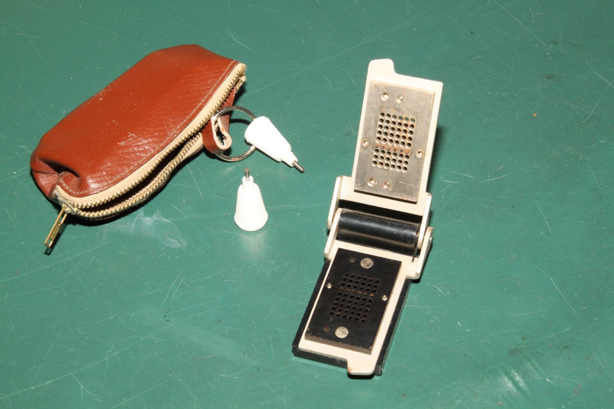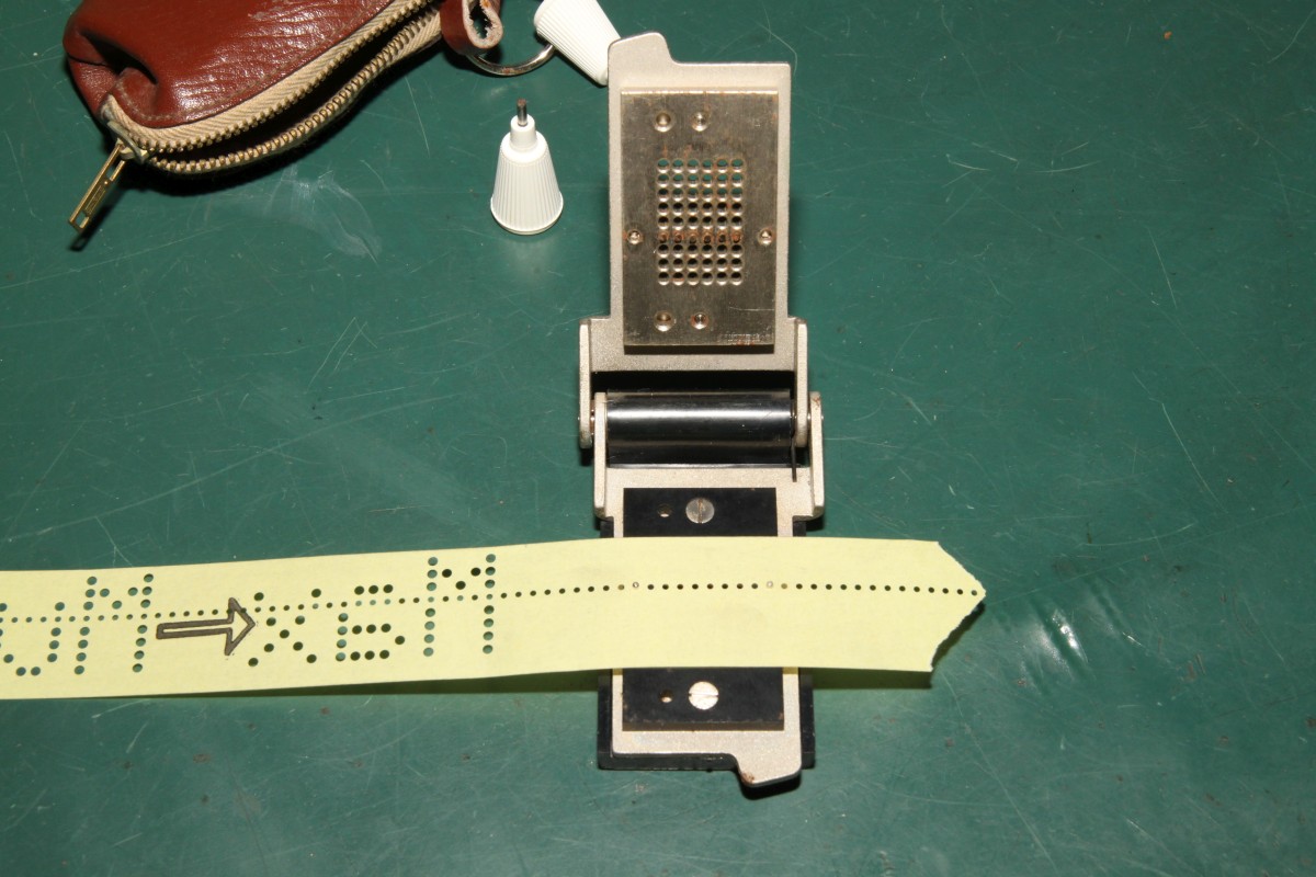 {Taschenlocher} ein schönes weiteres Exponat hat sich in meiner Museums-Sammlung eingefunden: ein Lochstreifen-Handlocher. Nicht, dass man damit mehrere KB Daten händisch in Lochstreifen lochen sollte, aber für kleine Korrekturen ist das Teil wohl mal ursprünglich gedacht gewesen. Geliefert wurde es mit einem praktischen Ledertäschchen: