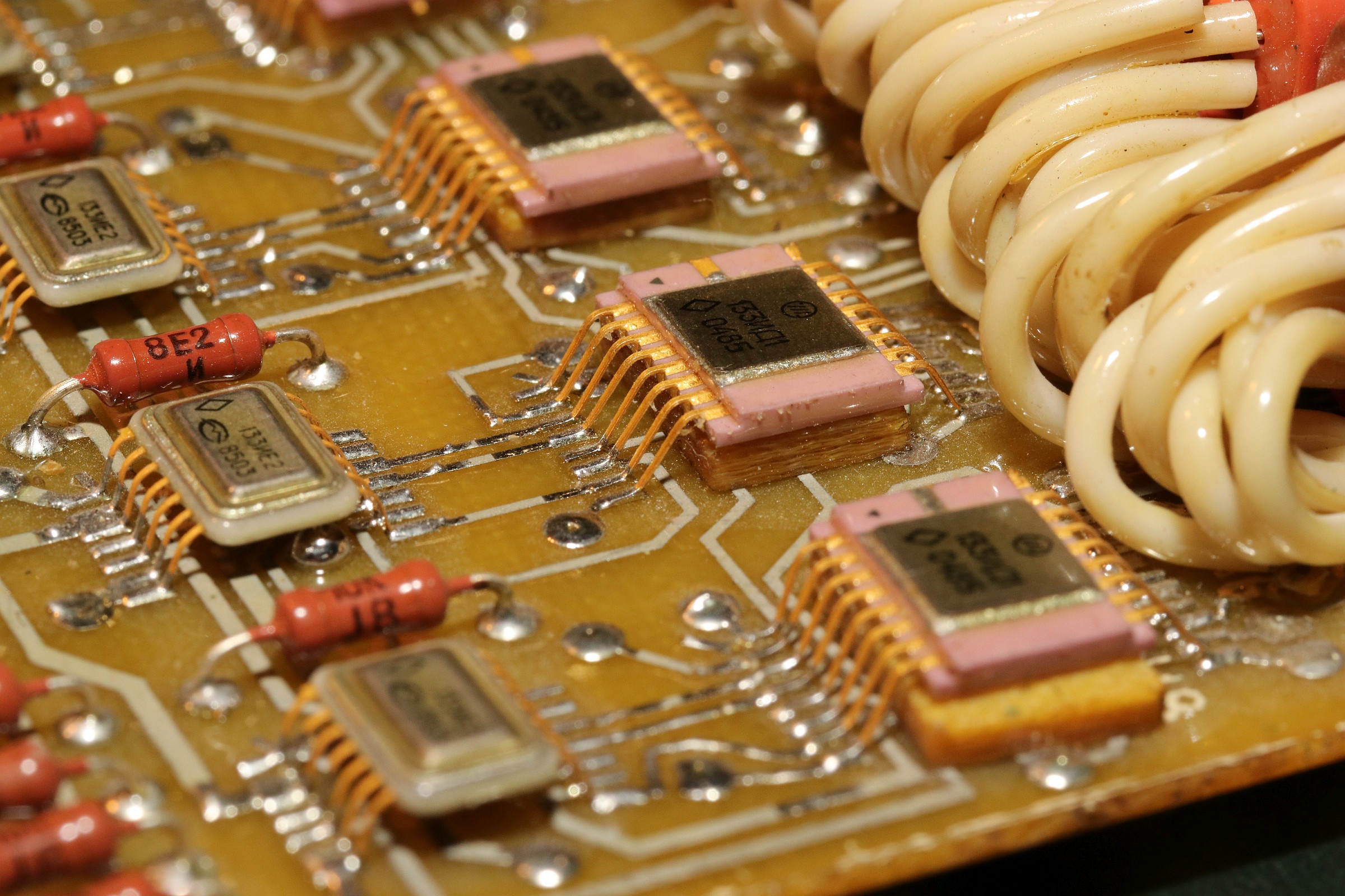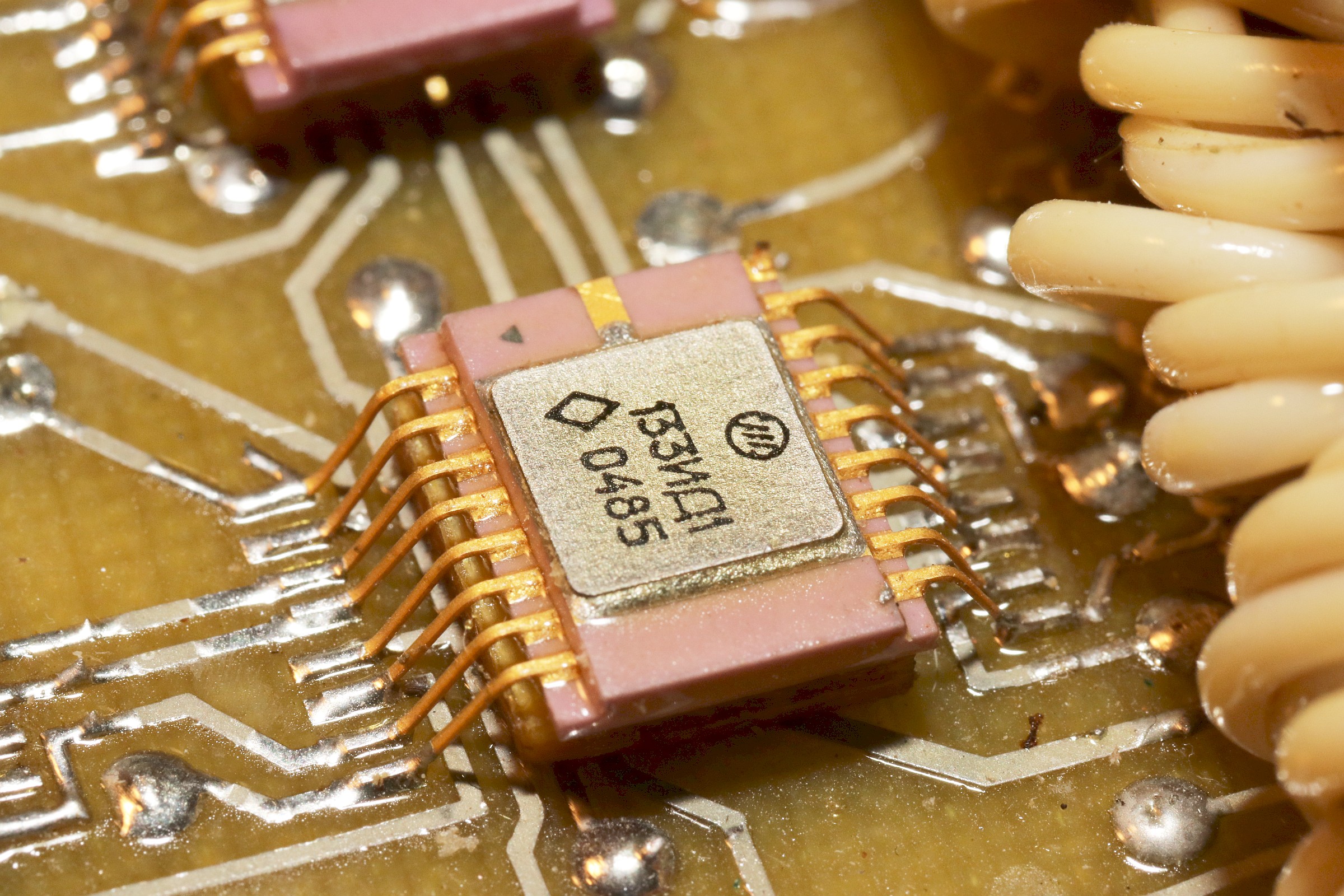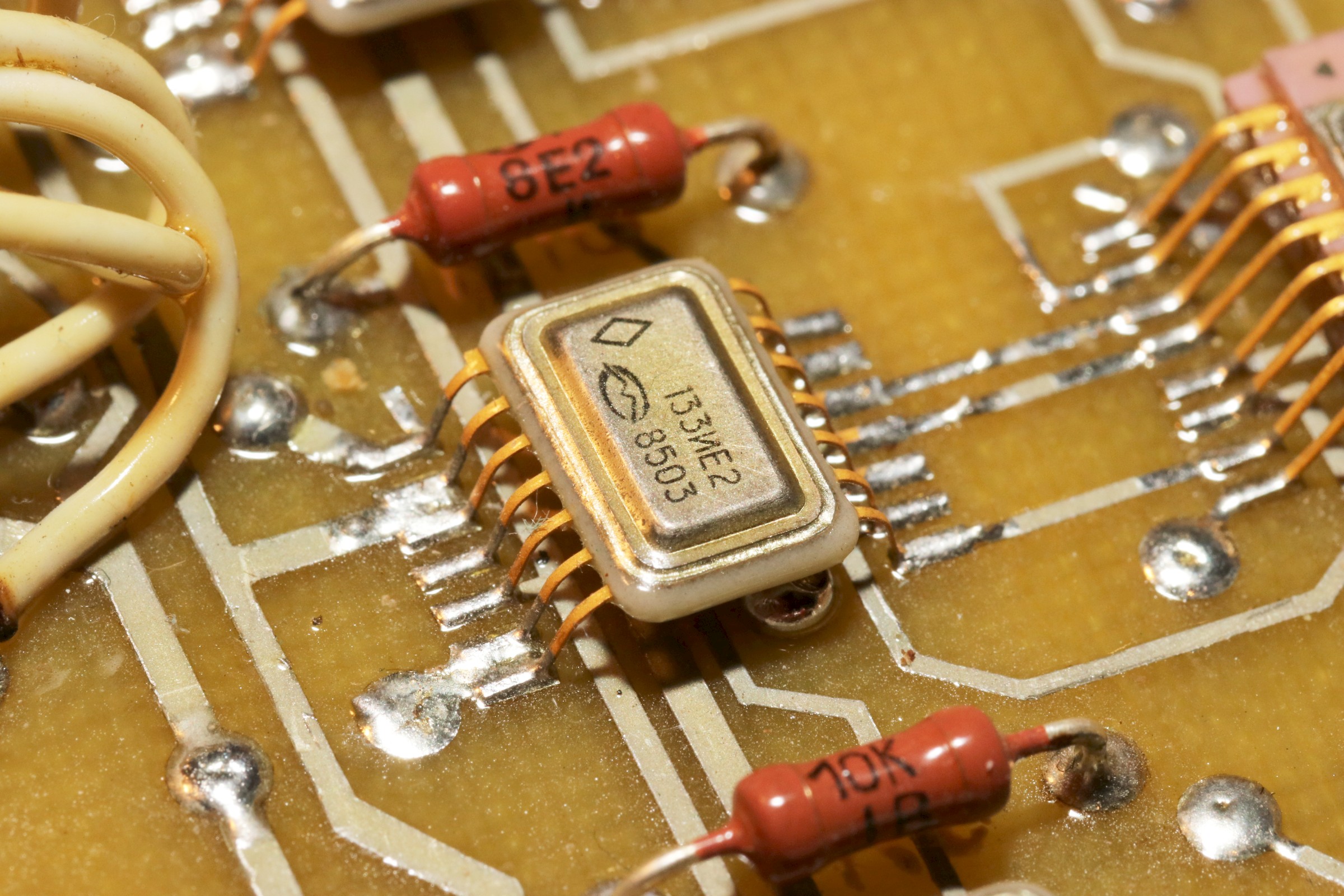 Typische Russen-Militär-Elektronik - diese IC-Bauform gab es bei TI Ende der 60er auch schon für TTL-ICs... Dann hat man die Teile groß gemacht, um sie als DIL-Gehäuse verkaufen zu können - und sich nachher wieder gefreut, als es sie in SMD wieder kleiner gab. Das verstehe, wer will...