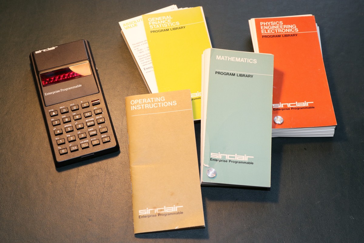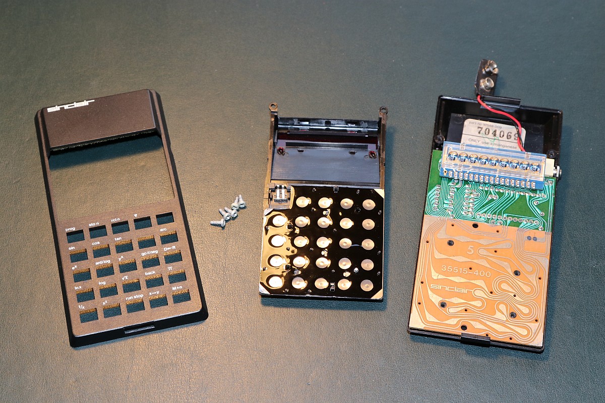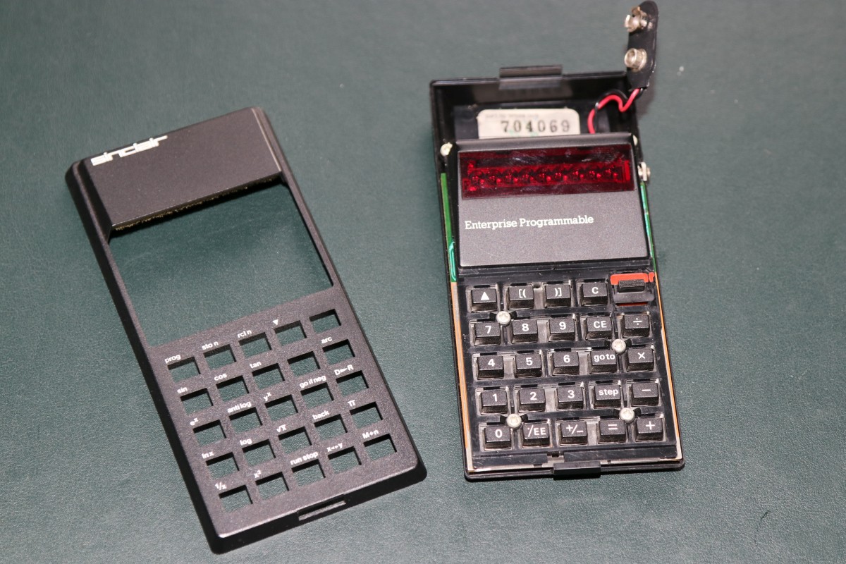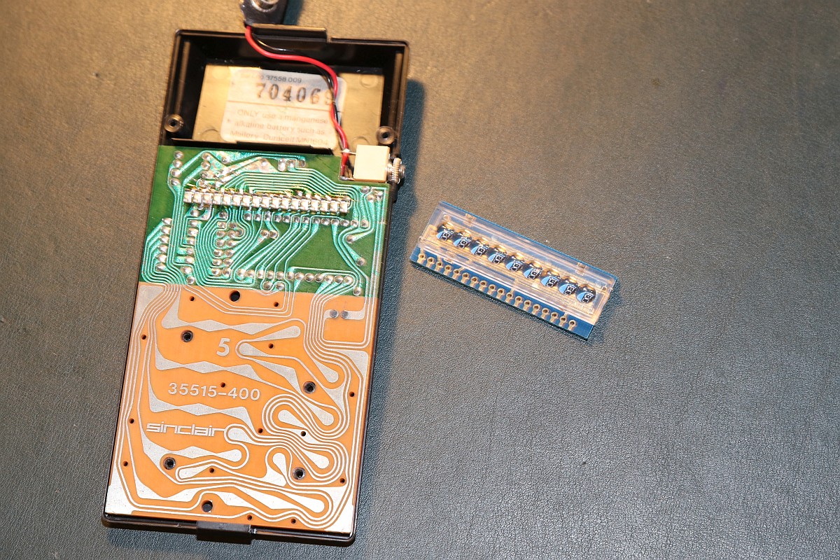 {Sinclair Enterprise Programmable} In einer Werbeanzeige von Sinclair Taschenrechnern steht sinngemäß "Man hat ihn nicht einfach, man trägt ihn!" - also wie einen Anzug oder eine teure Uhr... wir wissen alle, was von Werbeaussagen zu halten ist, trotzdem: die Sinclairprodukte waren quasi die Apfelprodukte der 70er/80er - nur viel billiger. Sieht besser aus, als er ist: Batterietausch geht nur durch Demontage der Frontblende. Das Plastik fühlt sich extrem billig an. Ich muss zugeben, das schwarz-weiße Design gefällt mir auch heute noch und der Rechner funktioniert sogar! Anbei eine Bedienungsanleitung und drei fette Wälzer mit Programmierbeispielen für jede Gelegenheit - die Bücher haben wahrscheinlich drei Viertel der Herstellungskosten ausgemacht... Typisch Sinclair: maximale technische Funktion bei minimalem Materialaufwand: Tastatur und Elektronik sind auf einer Platine untergebracht - unter dem Lötstoplack befindet sich das gleiche schrumpelige Lötzinn wie beim ZX-81 - vermutlich der selbe Lieferant für die Leiterplatten... Alles, was ein Taschenrechner braucht: drei ICs von National Semiconductors: Das LED-Modul ist gesteckt - das hätte man aber noch preislich optimieren können... |