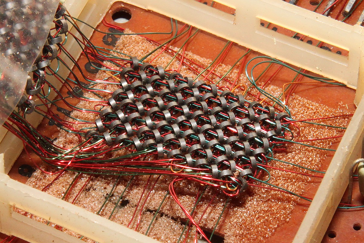 Im Inneren versteckt sich ein mehrfach gefalteter Kernspeicherstreifen - spart Platz...