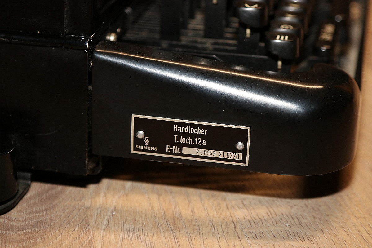 {Der Siemens Handlocher T.loch.12a} Ich hätte es wissen müssen... wenn so ein schönes Gerät schon "Handlocher" genannt wird, dann sollte man nicht in die nicht laufende Maschine greifen... aber erst mal alles von Anfang an. Der Siemens T.loch.12a - Baujahr 1955 - ist quasi die Reiseschreibmaschine unter den Fernschreibern. Wer gerade kein Fernschreibnetz zur Verfügung hat und trotzdem schon mal seine Webseitentexte vorbereiten will, der greift zum Handlocher T.loch.12a. Dieser bringt den Text problemlos in ein 5-Loch Fernschreiberformat auf Lochstreifenband.