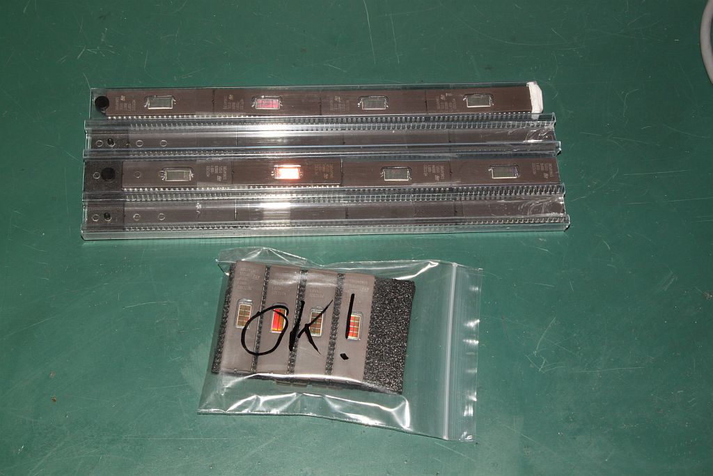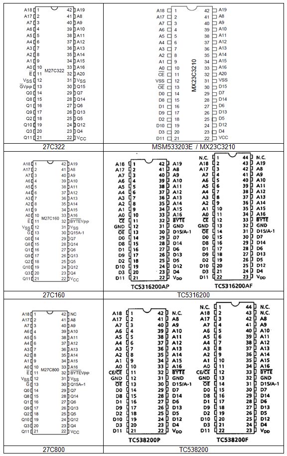 {Spieleauswahl} Was ich mir wünsche: Viewpoint, Pulstar, Blazing Star... Was ich billig bekommen habe: Metal Slug (keine Angst, die lass ich leben!), NeoGeo Cup98, Fatal Fury... Über die beiden Webseiten oben habe ich Erfolg: Blazing Star und Cup 98 haben die selben Platinensets, wenn auch mit etwas unterschiedlicher Bestückung: CHA512Y und PROGBK1. B-Ingo! ;-) Und das Originalspiel ist nicht so mein Ding: {Epromauswahl} Jetzt mal zum Vergleich die Originale von Blazing Star (Danke an mvs.gotwalls.com!): Und dann dachte ich, es könnte losgehen. Es fing so gut an, die Lager waren gefüllt: Doch was ist DAS? Korrosionsspuren im EPROM! {Vorübergehende Pause...} Kein Wunder, wenn das Ding nicht mehr richtig funktioniert! Hatte ich vorher noch nie. Beim Löschversuch ist übrigens das Fensterchen von innen (!) beschlagen! Und Fenster aufmachen zum Lüften ist hier glaub ich auch nicht hilfreich... {Eproms brennen} Lieferung ist da... einmal sehr günstig aus Bulgarien, war innerhalb von einer Woche da! Respekt! Und der Umtausch der defekten Charge... Ich bin gespannt. Nach gefühlten 60 Minuten Brennen... {Auslöten} Jetzt die Spendercartridge von den alten ROMs befreien. Das Entlöten gestaltet sich einfach, da die ROMs nur einseitig gelötet sind. Die Bohrungen sind nicht durchkontaktiert, eine gute (!) Entlötlitze reicht hier völlig aus. {Einlöten} Nun müssen die neuen ROMs an die richtigen Stellen, ebenso der fehlende 74LS74, ein 4k7 Widerstand und diverse Jumper. Die genauen Details sind den Fotos zu entnehmen, die auf Klick größer werden! Das Einlöten geht ähnlich fix, der Lötstopplack verhindert ungewollte Brücken. Der 74LS74 muss nachgerüstet werden, ebenso ein 4,7 kOhm Widerstand und diverse Brücken. Das letzte Foto zeigt den Stand mit den falschen 16-Bit-V-ROMs, der Sound funktioniert nur richtig mit 4 Stück 27C160! (Jumperstellung beachten!) {Einschalten...} Und das kommt raus, wenn man den Strom anmacht: {Fluchen...} Geil... aber... nein! :eek: Der Ton funktioniert nicht... Mist... Klingt wie ein alter kaputter Lautsprecher... Für die Samples sind die PROMs V1 und V2 zuständig. Ein Blick auf die Leiterplattenunterseite enthüllt Schreckliches: Die hochwertigen Datenleitungen sind nicht verbunden. Die originalen Proms arbeiten im Byte Mode... :-( 27C322 kann nur Word-Mode, weil er zu wenig Beinchen hat. Aber es gibt eine Lösung: bei 27C160 ist der Byte-Mode möglich, dafür braucht man halt vier Stück statt zwei 27C322. Und die Jumper müssen richtig gesetzt werden! Der "neue" 512Y: Der "neue" BK1 (ohne Samples): Und der "neue" BK1 (mit richtigen Samples und aufgeteilten 27C160): {Das Finale:} Und zum Schluss darf natürlich ein professionelles Label nicht fehlen, damit ich die Originale-Sammler so richtig über den Ebay-Tisch ziehen kann... {EPROM vs. PROM} Hier mal noch die Pinnings der eingesetzten (E)PROMs zur besseren Übersicht: |