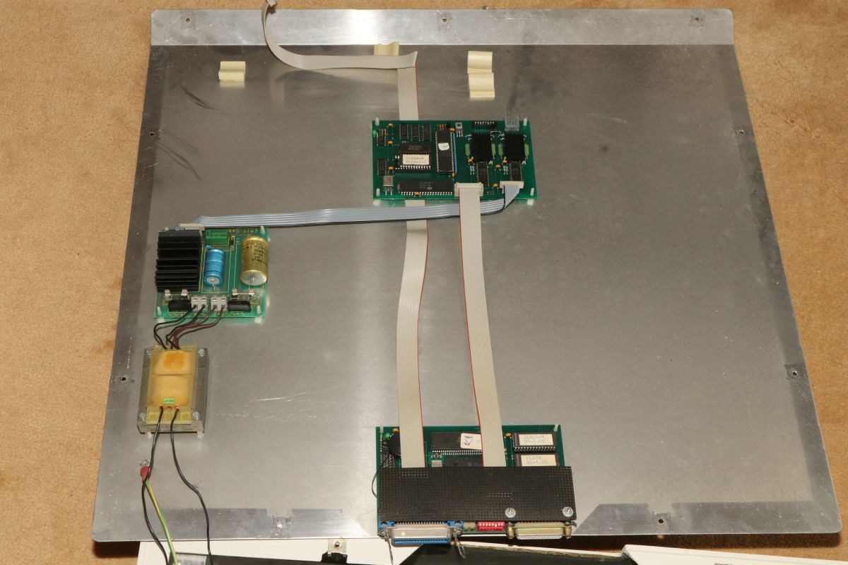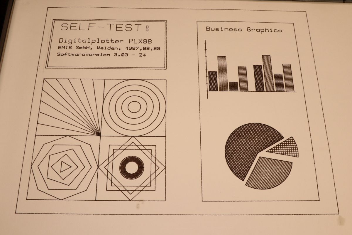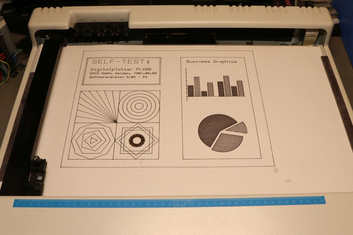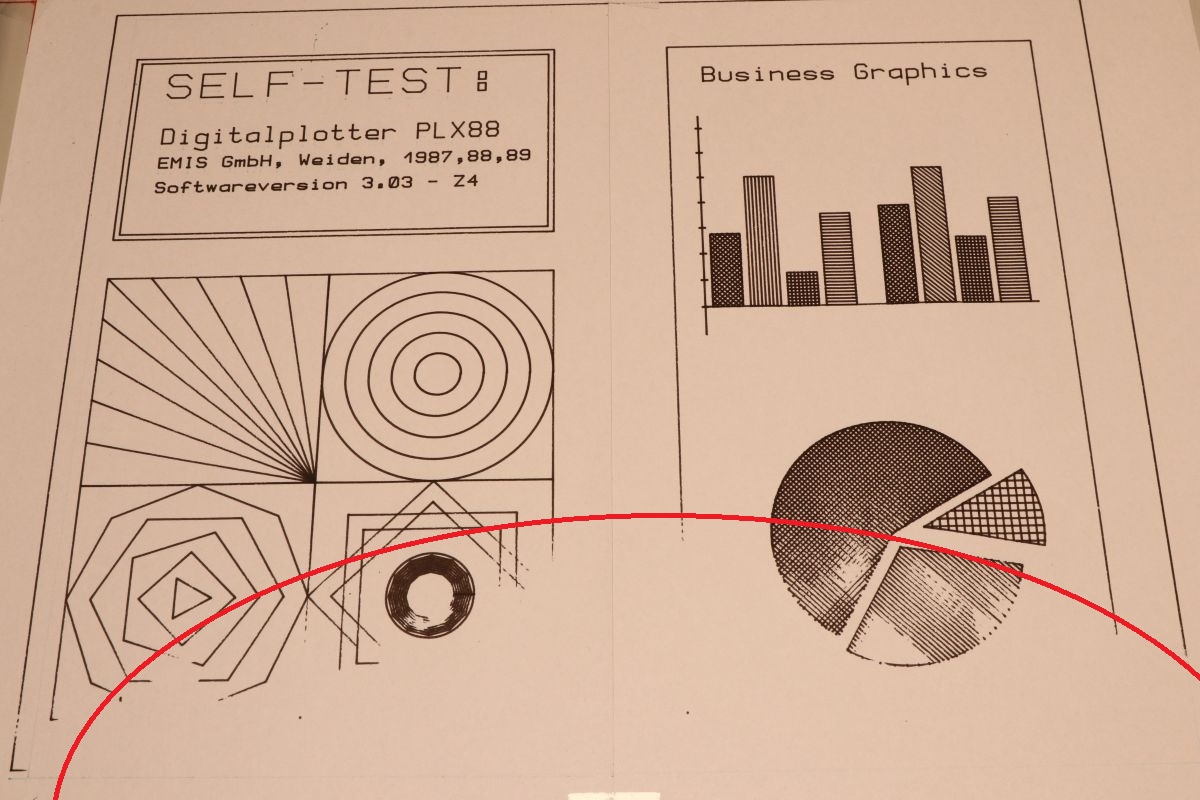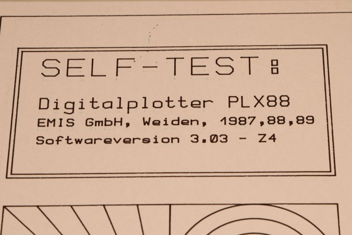{Der DIN A3 Plotter PLX-88 von Emis} Die Firma Emis gibt es heute noch! 1987/88 hat sie einen Flachbettplotter auf den Markt gebracht, der sowohl über eine parallele als auch über eine serielle Schnittstelle angesprochen werden kann, vier Stifte zum Wechseln schluckt und HPGL spricht. 2024 angeschlossen, funktioniert das Gerät immer noch (fast) einwandfrei: Einzig die Arbeitsfläche ist nicht ganz eben - kein Wunder bei dem Gewicht, dem Transport und der langen Lebenszeit des Gerätes: {Reinigung und mechanische Anpassung} Zuerst wird der Plotter mal ausgiebig inspiziert, gereinigt und die Stifthöhe justiert. Und nein, ich benötige keinen Handtuchhalter... Parallele und serielle Schnittstelle in trauter Gemeinsamkeit - hier kann man wählen... Der Plotter ist größer, als er auf den ersten Blick aussieht - das Papier ist ein DIN A4 Blatt... Ein schöner und einfacher Flachbettplotter: Die Bodenwanne ist rustikal. Hier verschwimmen die Grenzen zwischen selbst gemacht und kommerziell. Auch die Kabel sind rustikal verlegt... Die Elektronik ist spartanisch aber ausreichend. Coole Netzverkabelung... Der Motortreiber in hoher Bildauflösung. Hier werkelt eine 6502 CPU mit 4kB Betriebssystem - vermutlich werden hier nur Geschwindigkeitsrampen gerechnet. Das Netzteil ist auch sehr überschaubar. 5V und 30V müssen reichen. Ein wenig mehr Intelligenz und Rechenleistung steckt in der Schnittstellenplatine... Und eine schwarz lackierte Lochrasterplatine als Abdeckung... Auch die Motorverkabelung sieht sehr rustikal aus - man möchte gar nicht glauben, hier ein Serienprodukt vor sich zu haben. Y-Motor und Stifthubmagnet: Eine interessante Seilzugmechanik auf der Rückseite: sie sorgt dafür, dass der Y-Schlitten immer rechtwinklig bleibt. Die Stabilisatorpappe löst sich ab - da muss ein neuer Klebstoff her. Rustikal: der Abstandshalter für das Stahlseil. Immerhin lässt sich alles gut demontieren: Der Y-Zahnriemen ist nicht gut ausgerichtet - ein Grund für die ungleichmäßige Stifthöhe. Das Zahnrad sitzt leider so fest auf der Welle, dass es sich auch nach Demontage der Madenschraube nicht lösen lässt - also muss ich mit dem Versatz leben. Erwähnte ich schon, dass so manche Konstruktionen hier echt rustikal sind? Defekt? Neu? Repariert? Die Platine hat eine Produktionsgeschichte... In hoch auflösender Pracht: die Schnittstellenplatine mit Z180 Prozessor (HD64180) und 2x32k ROM. Hier findet fast alles statt: Schnittstellenbedienung und HPGL-Decodierung. Der Z180 ist ein cooler Z80 mit eingebauten I/O-Schnittstellen und Bankswitching, der zudem in der Abarbeitung der Befehle noch schneller als der Z80 ist. Ansonsten ist er wohl angeblich Code-kompatibel. Dem Netzteil habe ich mal vorsorglich zwei neue Kondensatoren spendiert. Und nachdem ich den Stifthubmagnet mit zwei Beilagscheiben um 1mm tiefergelegt habe, ist der Papierkontakt auch wieder hergestellt. Sieht sauber aus und die Wiederholgenauigkeit ist grandios! Rustikal heißt in diesem Fall nicht automatisch schlecht! Nächster Schritt: Stabilisatorpappe neu einkleben und serielle Schnittstelle testen... {Und er plottet doch...} Punkt 1: Teppichklebefolie gibt es von der Rolle, superdünn und doppelseitig klebend. Genau das Richtige für diesen Anwendungsfall. Das hält die nächsten 30 Jahre... Und dann kommt der große Moment: DIP-Schalter auf RS-232, 9600-8-n-1 einstellen, D-SUB25 auf D-SUB9 Adapter und den USB auf RS-232 Konverter eingesteckt und das Terminalprogramm gestartet. Nicht vergessen: Handshake aktivieren! Und ja, der Plotter frisst problemlos HPGL und PLT-Dateien. Der frisch gereinigte Tuschestift liefert ein glasklares Bild, leider ein wenig klein skaliert... Mit der Scaling Anweisung SC0,4000,0,2750; bekommt man dann doch ein etwas größeres Bild. So sieht übrigens ein HPGL-File aus: alles ASCII-Textbefehle. PA: Plot Absolute X,Y; PU: Pen Up; PD: Pen Down; |