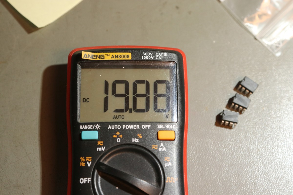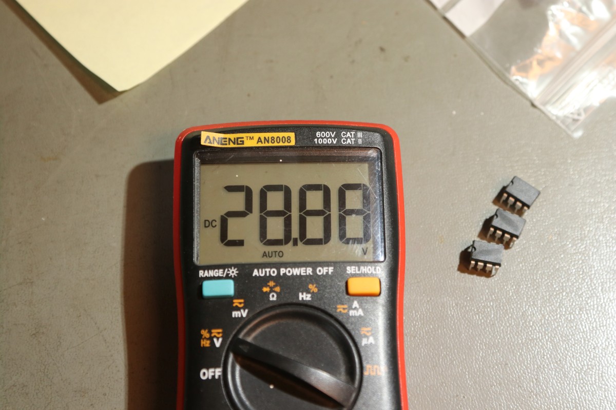 {HiLo All11 Reparaturversuch} Heute mal ein Bericht eines erfolglosen Reparaturversuchs bei einem HiLo-Programmer. Das Gerät erreichte mich mit dem Hinweis, man hätte die beiden Versogungsspannungen +5V und +12V vertauscht. Die markierten Bauteile werden bei korrekter Bestromung deutlich warm... Die Transistoren sind aber noch in Ordnung. Tja... die Steckerbezeichnung auf dem Netzteil beschreibt eben die Polung an der Netzteilbuchste, nicht am Gerätestecker. Da kann man schnell durcheinanderkommen. Die ersten zwei Schaltregler sind geplättet, der 12V-Zweig ist kurzschlüssig - ich bestellte Ersatz: Die Leichen: ...entfernt... ...und ersetzt. Die Stromaufnahme ist nun wieder in Ordnung, so scheint es zumindest. Die Programmierspannungen liegen alle wieder an: Auch die zweite Spannung: Leider sagt der Rest keinen Mucks, selbst der Quarzoszillator liefert nicht mal mehr ein Taktsignal. Mein Durchgangsprüfer verrät mir, dass der 5V-Zweig ungefiltert und ungesichert zur Logik geht - wen da 12V anliegen, ist das nicht gut... Schade um das schöne Gerät, wer beim HiLo das Netzteil verliert, der möge bitte vorher gut nachsehen, welche Spannungen wohin gehen! |