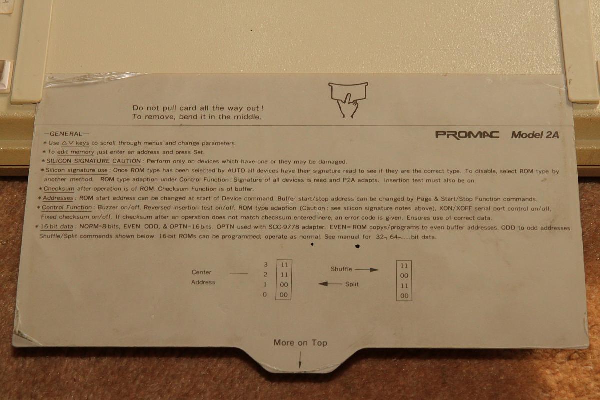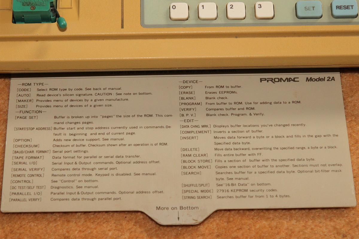 {Promac Model 2A} Das Teil war als Dreingabe bei einem Sack EPROMs dabei. Ein Programmer über den man im Netz kaum noch Infos findet. Das Teil kann Seriell und Parallel und vermutlich auch Stand alone Kopieren...