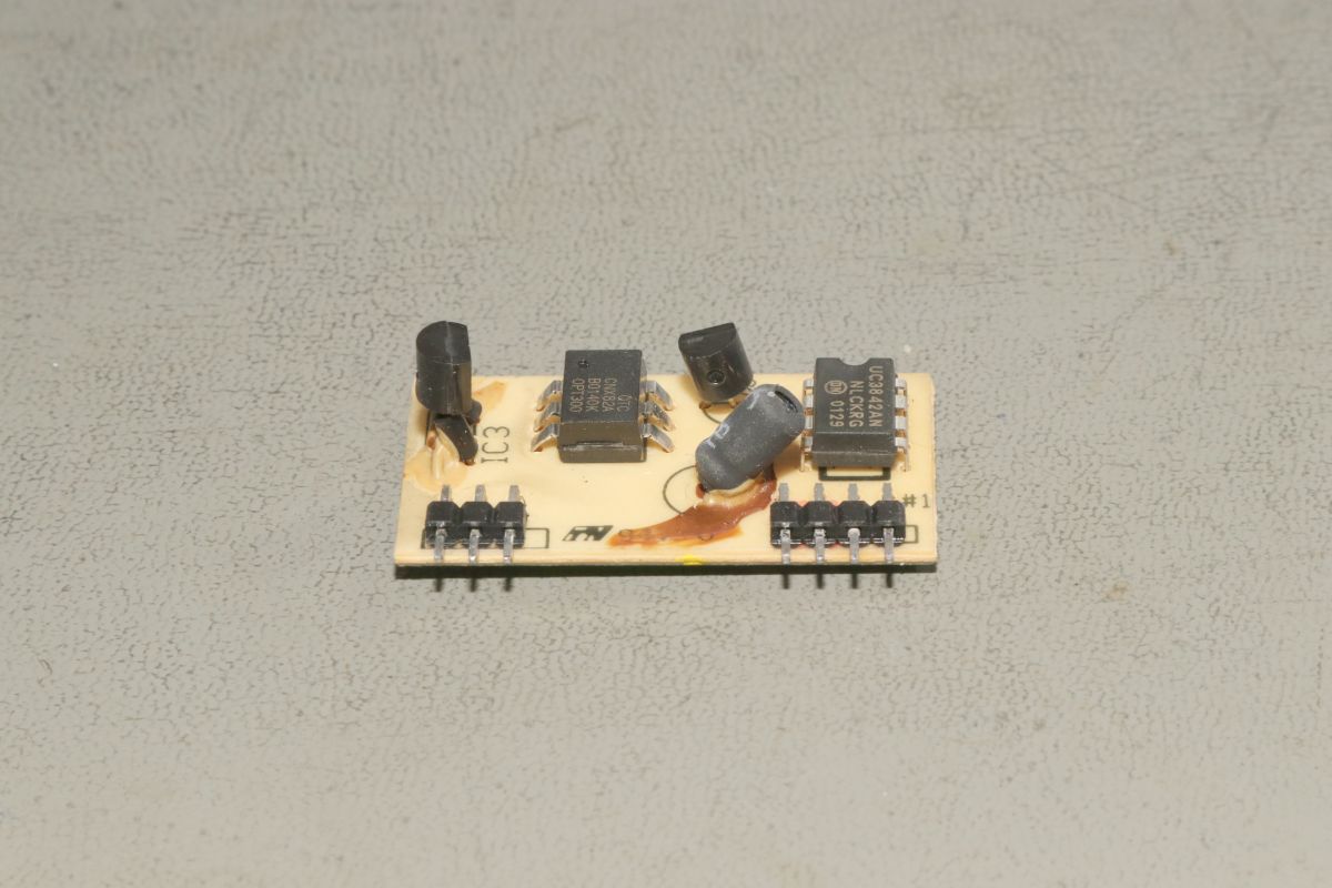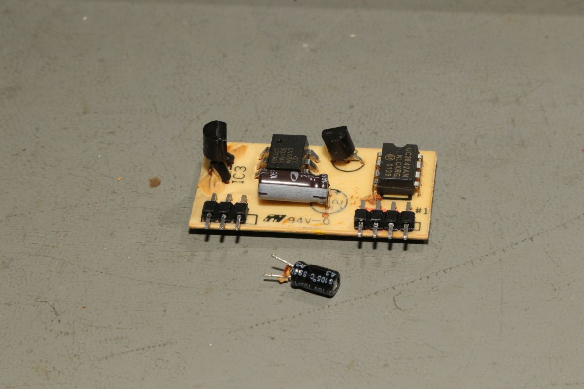 {Sprint Plus 48 Reparaturen} Von einem sehr freundlichen Menschen habe ich zwei Sprint Plus 48 Programmer zugeschickt bekommen. Einen direkt von SMS, dem ursprünglichen Entwickler des Sprint, und einen von Data I/O, der innen 100% dem SMS-Gerät entspricht. Also eine klassisches Brand Labeling. Leider tat nicht alles auf Anhieb so, wie es sollte... Aber wer mich kennt, weiß: das hält mich nicht auf! Die Diagnose ergibt: der Kippschalter für die Spannungsversorgung schaltet nicht mehr. Wenigstens ist es nichts kompliziert Elektronisches... Der Kippschalter von der Seite: Schon ausgelötet... Das sind die Einzelteile des Kippschalters: Wenn man genau hinsieht, dann kann man auf einer der beiden Schaltwippen einen gehörigen Abbrand erkennen. Das war der Übeltäter! Vorsichtiges Abschleifen und Auspolieren hat hier wunderbar geholfen, nach dem Zusammenbau funktionierte der Schalter wieder einwandfrei. Aber machen wir uns nichts vor: ohne die schützenden galvanisierte Oberfläche wird diese Reparatur auch nicht von allzulanger Dauer sein! Wenn es dann wieder so weit ist, kann ich ja die Schalterkontakte auf Dauer-Ein mit dem Lötkolben überbrücken! Hier noch mal das Sprint Mainboard, welches auf Klick ganz groß wird! {Sprint Plus 48 Netzteil Fix} Der Schalter war einfach, aber eines der Netzteile ging auch nicht... Die Sprint Plus 48 Netzteile neigen früher oder später zu Startschwierigkeiten. Die Spannung beginnt am Anfang zu "pumpen", bevor sich stabile Verhältnisse einstellen. Je länger man mit der Reparatur wartet, desto schlechter starten die Netzteile. Irgenwann geht gar nichts mehr! Das Loch im Gehäuse kommt von meiner Dummheit... Der Stecker ist recht ungewöhnlich, ebenso die Bereitstellung von drei Versorgungsspannungen: 5V/12V/-5V... ein Ersatznetzteil habe ich bisher nirgendwo gefunden, deswegen muss eine Reparatur gelingen... Auf dem Typenschild ist die Steckerbelegung angegeben, die stimmt hier aber nicht!!! Der Stecker ist fünfpolig, Masse ist auf zwei Pins herausgeführt! Ach ja, unter dem Blechschild ist die Schraube versteckt, die das geclipste (!) Gehäuse zusätzlich zusammenhält. Die angesprizte Gewindehülse war da, wo jetzt das Loch im Deckel ist. Ja. Hinterher ist man immer schlauer! Egal. Das nenne ich mal kompakt... Der Schaltregler UC3842 für das schnuckelige Fly-Back-Netzteil ist zusammen mit seinem Feedback-Optokoppler CNX82A auf einem Extra-Platinchen: Nachdem der primäre Pufferkondensator nach dem Gleichrichter und die sekundären Pufferkondensatoren einwandfrei waren, wendete ich mich dem Schaltregler zu... Der isolierte Kondensator puffert die Referenzspannung... Leider war er nicht defekt... Aus dem Microcontroller Forum - sonst eher bekannt für Diskussionen rund um und gegen die Wiedervereinigung und sonstiges Trolling - bekam ich einen goldrichtigen Tip! Bei diesen Netzteilen geht gerne die Pufferung der Versorgungsspannung für den Schaltregler kaputt. Hier wird ein Elko - solange der Wandler noch nicht angelaufen ist - über einen hochohmigen Widerstand (100k) direkt von der gleichgerichteten Netzversorgung geladen und ermöglicht dem Controllerbaustein erst mal den Anlauf. Wenn das Netzteil dann läuft, übernimmt die Versorgung die sekundäre Hilfswicklung. Dieser Kondensator wird gerne taub... Genau das war das Problem. Weitere Möglichkeiten wären gewesen: ein gealterter Optokoppler oder der Ladewiderstand für den vorher erwähnten Anlaufkondensator war nicht spannungsfest genug und ist unterbrochen. Hier noch mal das Controllerplatinchen von unten: Wer es ganz genau haben will: hier ist der Applikationsschaltplan von TI. Das Netzteil ist grundlegend ähnlich aufgebaut, natürlich mit zwei zusätzlichen Sekundärkreisen! Fazit: es gibt kaum etwas, was sich nicht reparieren ließe. |