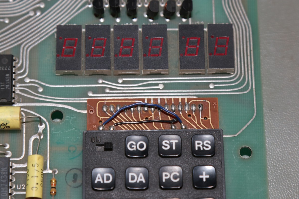 {Commodore KIM-1} Dank freundlicher Zeitgenossen, die meine Seite lesen und auch den Zerobrain Youtube-Kanal sehen, werden mir ab und an Schätze angeboten, zu denen ich einfach nicht Nein sagen kann... so auch dieser KIM-1, der als Commodore-Derivat sehr gut den Keramik-Original-KIM-1 ergänzt. Commodore hatte ja MOS gekauft und nach dem unerwarteten Erfolg des KIM-1 eine leicht veränderte Variante herausgebracht. "Leicht verändert" heißt wohl in diesem Zusammenhang alles ein wenig billiger und schlechter gemacht... kein Lötstopplack, schlechtere Tastatur... aber immerhin hat der 6502 keinen ROR-Bug mehr! Die Freude war groß, als der KIM beim Einschalten nach dem Reset sofort Zahlen anzeigte. Doch oh Schreck, nicht alle Tasten zeigten Wirkung... manche schlecht, die Reihe von 7-D gar nicht... Erst hatte ich den Decoder 74145 in Verdacht, doch der tat! (nicht erschrecken, das ist ein Open Collector-Typ, da kommen erst echte Pegel, wenn man eine Taaste drückt!) Dann den Portbaustein 6530 - das wäre Übel, weil es dafür keinen Ersatz gibt, doch auch dort pulsten alle Ausgänge brav! Blieb nur noch die Tastatur selber... Die Commodore-Variante: mit Plastik-ICS, dafür gesockelt! Die Tastatur ist mit fiesen Lötnägeln verlötet... sauber umgebogen, damit es richtig schwer wird. Die doppelseitige KIM-Platine bekommt man sauber und ohne Beschädigung frei... ...auf der billigen Pertinax-Tastaturplatine hingegen löst sich so manche Leiterbahn... Egal, das bekomme ich sauber wieder hin. Nach Zerlegen der Tastatur offenbart sich das ganze Unheil - auch die Tatsache, dass ich die Tastatur gar nicht hätte auslöten müssen... man lernt nie aus! Das Leitsilber auf der Folie ist korrodiert... ...oder gar ganz weggerubbelt - so kann das ja auch nicht mehr funktionieren... Immerhin kann ich die Platine wieder sauber einlöten und die Leiterbahnen flicken und polieren: Ein Fläschchen Silberleitlack habe ich bestellt und auch mal ein Handgalvanisierset... mal sehen, was sich damit retten lässt. Ich werde Euch auf dem Laufenden halten! {Tastaturreparatur} Also... Leitsilber ist mein bester Freund... Aber wenn so eine Packung schon mit Warnhinweisen gegen alles daherkommt, dann muss es ja gut sein! Mit beiliegendem Schwammstift ganz leicht tupfen - vorher natürlich gründlich mit Waschbenzin und Ohrstäbchen reinigen... Auf keinen Fall Aceton, sonst war's das mit der Folie und ihr habt Reinsilber an den Fingern... Ale Oxydationsreste sind verschwunden: Wichtig: superdünn auftragen! Ich denke, es hilft, dass noch Reste des Leitsilbers vorhanden sind... Es ist nicht schlimm, wenn das Silber mal über den Rand hinausgeht... Nach dem Trocknen (ca. 5min. und dem Zusammenbau funktionieren die Tasten besser denn je! Man muss nur ganz leicht drücken, schon werden die Ergebnisse prellfrei angezeigt! 0xA9... LDA... waren das Zeiten... Wie gut das langfristig halten wird, wird uns die Zeit zeigen - schlimmstenfalls muss man halt alle Jahre mal nachlackieren, aber es sieht gut aus! Ich werde vemutlich nicht mehr Megabytes an Hexcodes über diese Tastatur tippen... |