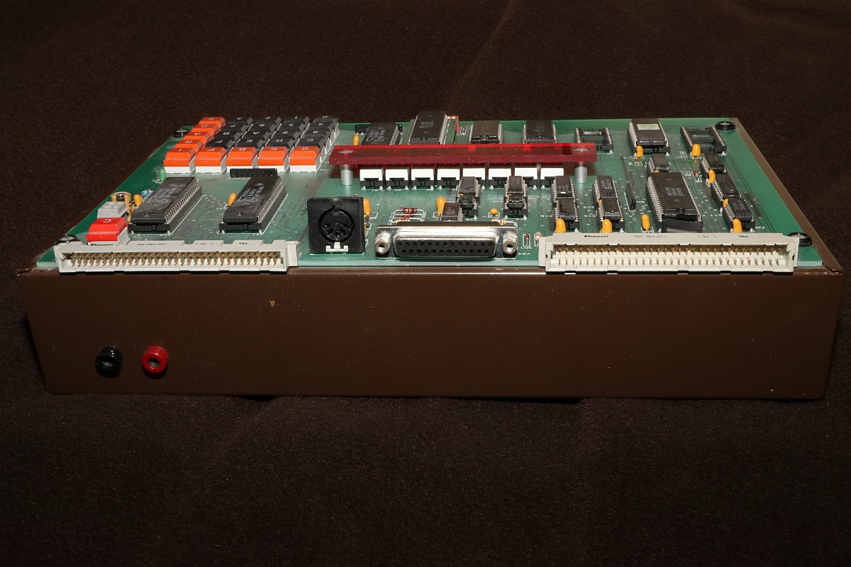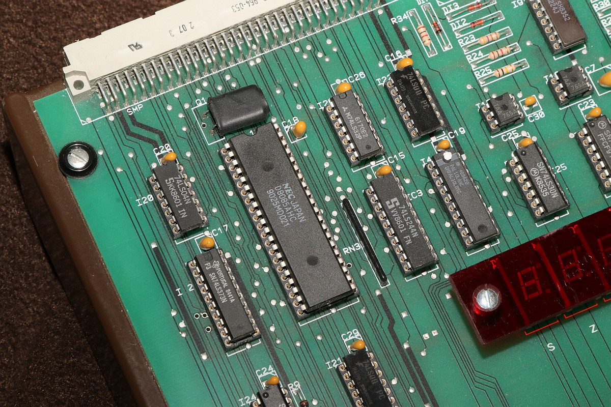 {PROFI-5/50 E Einplatinenrechner mit 8085} Ein erstaunlich langes Marktleben war dem PROFI-5/50 E Einplatinenrechner als Ausbildungscomputer beschieden: von 1981 bis 1994 wurde das Gerät als PROFI-5 verkauft, dann bis 2011 als PROFI-5/50E, jeweils wahlweise mit 8080 oder 8085 CPU! Entwickelt vom Ingenieurbüro Kammerer, erwies sich das System als extrem langlebig, vermutlich auch deswegen, weil es sich schnell in verschiedensten Ausbildungsbetrieben etablierte. Nun ist eines dank eines großzügigen Angebotes auf meinem Tisch gelandet und ich kann es euch nun vorstellen: Auch ein schöner Rücken kann entzücken... Auf der Rückseite des stabilen Blech-Pultgehäuses befinden sich diverse Anschlussmöglichkeiten für Zusatzkarten, V24-Schnittstelle, Cassettenrecorder und - etwas rustikal - zwei Bananenbuchsen für die 5V-Stromversorgung. Im Inneren des Gehäuses befindet sich... äh... genau nix. Das Blechgehäuse liegt an Masse. Das Arbeitstier: die 8085 CPU. Und im EPROM: ein ausgeklügeltes Monitorprogramm mit vielen nützlichen Funktionen. Alle wichtigen Dinge werden auf einem 8-stelligen 7-Segment-Display angezeigt... ...welches von einem seltsamen Custom-ASIC angesteuert wird. Von oben... ...und von Unten. Diese Konstruktion ersetzt wohl einen nicht mehr erhältlichen Displaycontroller aus früheren Versionen... Nach Anlegen der Spannungsversorgung begrüßt uns das System ganz profan mit "0000". Zusätzlich habe ich noch ein IC-Spielboard erhalten, auf dem man mittels Steckbrücken beliebige ICs verdrahten kann. Das Board von unten: Ich bin gespannt, was es zu diesem System noch herauszufinden gibt! {Hochauflösende Fotos von Jörg Svens Profi 5E} Schon vor Jahren erhalten - jetzt pflege ich sie endlich ein: Jörg Sven W. hat mir freundlicher Weise gute Bilder seines Profi 5E zukommen lassen, der sich vor allem durch den Displaytreiber unterscheidet. |