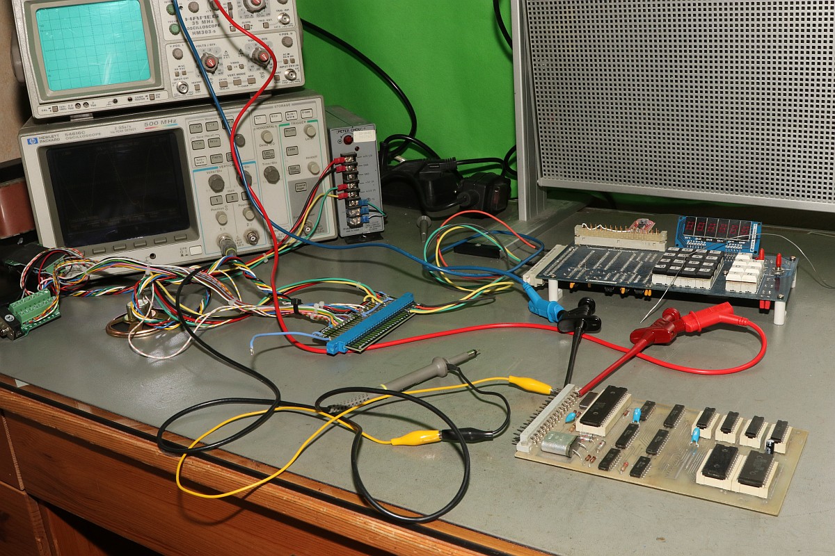{SC/MP Christiani Board} Nicht nur Elektor und Homecomputer haben sich auf das SC/MP Thema gestürzt, auch der rennomierte Bildungsverlag Christiani hat seine eigene Variante eines SC/MP-Prozessorsystems herausgebracht. Dieses ist aber im Gegensatz zu den Mitbewerbern eher spärlich dokumentiert. Mir ist davon leider nur die CPU-Platine zugeflogen: Monitorprogramm, RAM und CPU sind auf einer einzigen Steckkarte untergebracht: Der Quarz beeindruckt durch seine Größe... So sieht das komplette System aus: Tastatur und Display befinden sich auf einer separaten Platine. Ebenso das Netzteil und ein Metallpapierdrucker... (Das Bild ist den Christiani-Unterlagen entnommen) Ich bin gespannt, ob ich die Karte zum Laufen bekomme! {Reparatur} Irgendjemand scheint mal Cola oder irgendein anderes ätzendes Material auf die Platine getropft zu haben... Da rosten sogar die Tantalbeinchen - das muss alles runter, sonst wird das in Zukunft nicht besser. Die Sockel sind sehr stabil und können wiederverwendet werden... Feine Edelstahlwolle erledigt den Rest, jetzt verrottet nichts weiter. So sieht das doch schon viel besser aus! Probehalber hab ich das System mal unter Spannung gesetzt - das Christiani-Teil gibt sich erfreulicher Weise mit 5V zufrieden! Der Taktgenerator geht... Der Datenbus läuft - es sieht gut aus! Viel Leistung für wenig Leistung... früher war eben doch nicht alles besser. Irgendwo muss der Strom hin - in diesem Fall sind es die MASK-ROMs. Ich habe mir jetzt mal ein hübsches Bubble-Display besorgt - vielleicht kann man da mit einfachen Mitteln ein komplettes System basteln. |