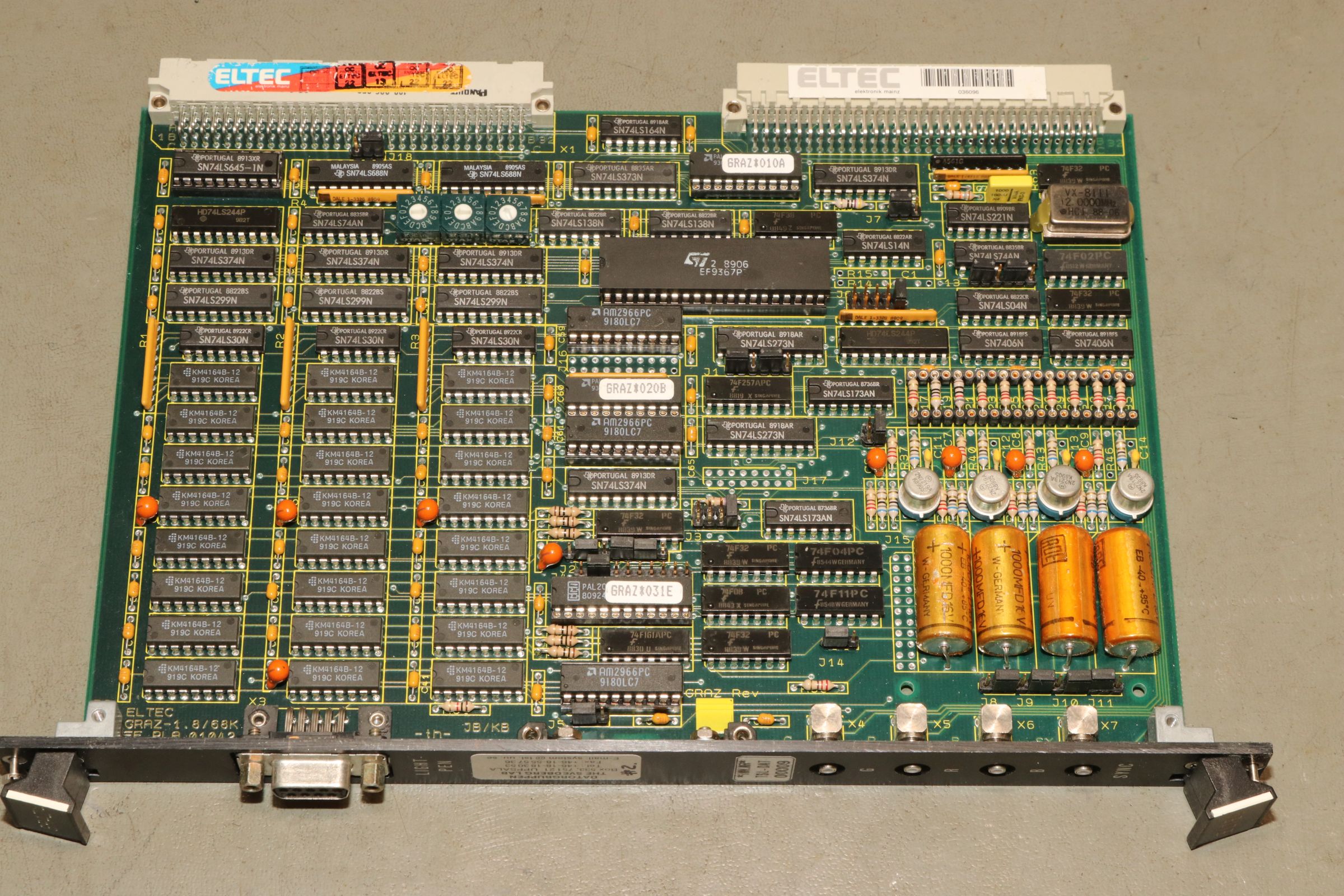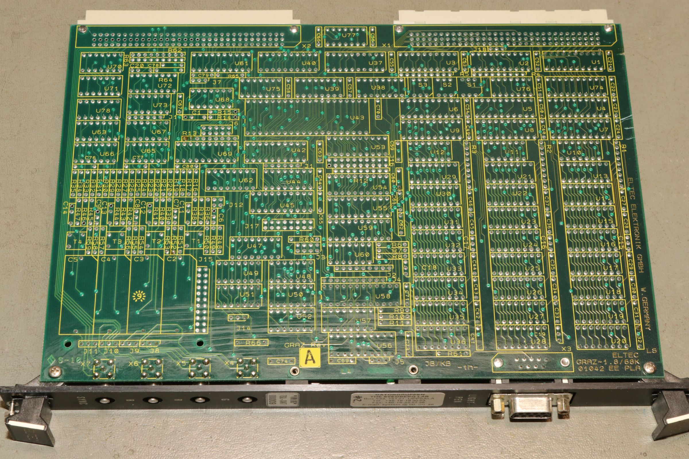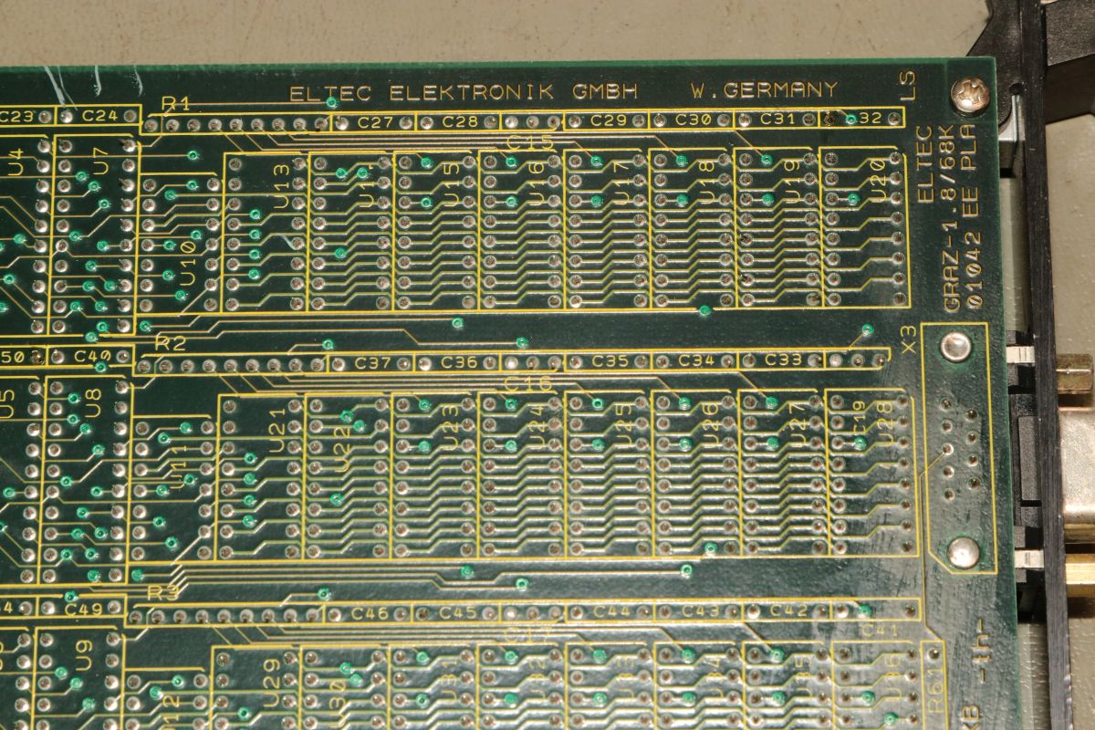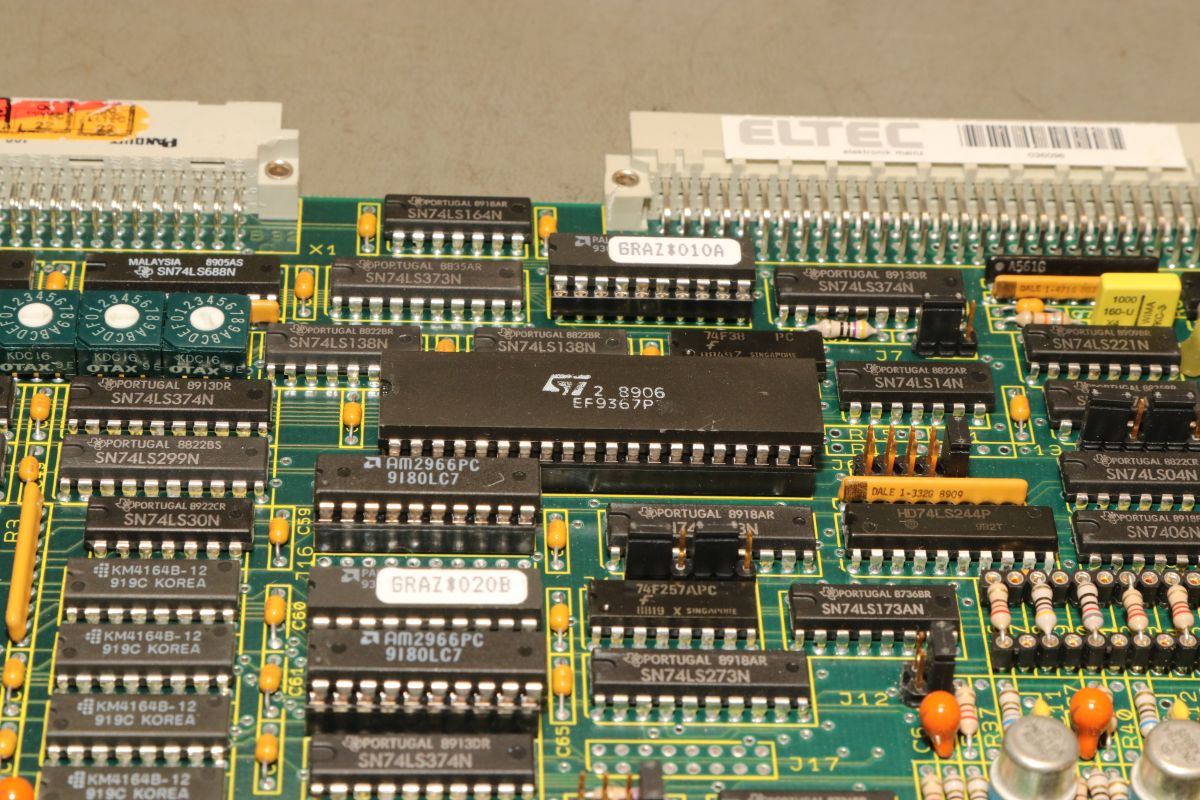 {ELTEC GRAZ-4} Eine RGB Grafikkarte mit dem bekannten Grafikcontroller EF9367 und 3x64k Grafikspeicher. Hier habe ich leider auch kein User manual gefunden! Aber wer den Elektor Kolorator kennt, der findet hier sicher einiges an Schaltungstechnik wieder.