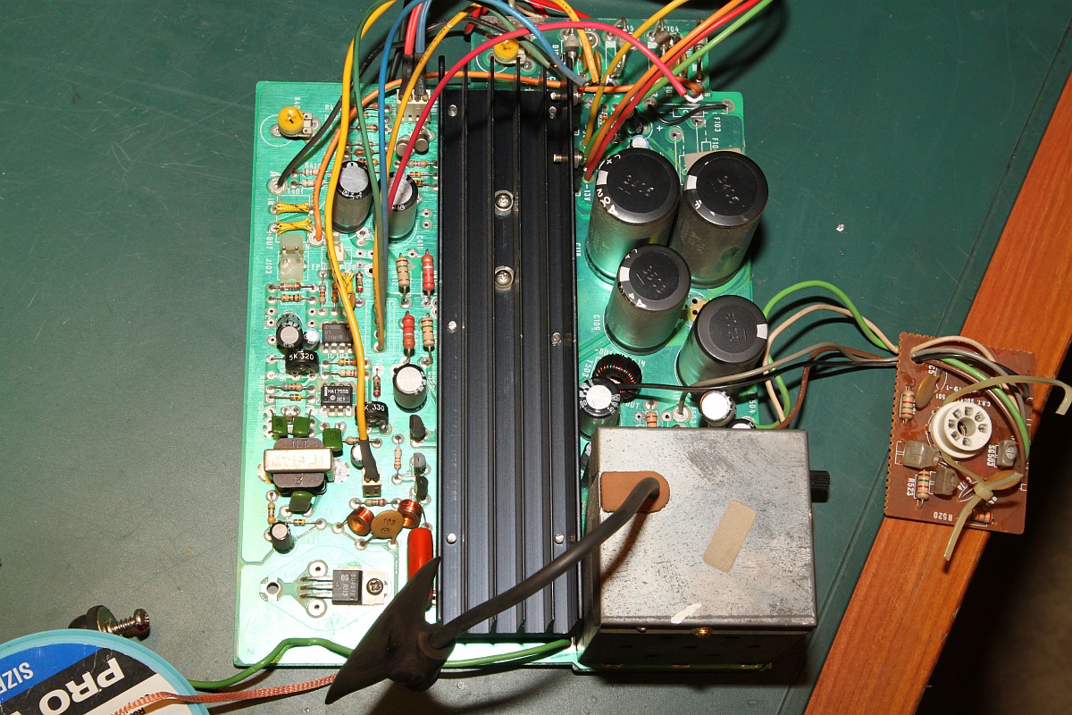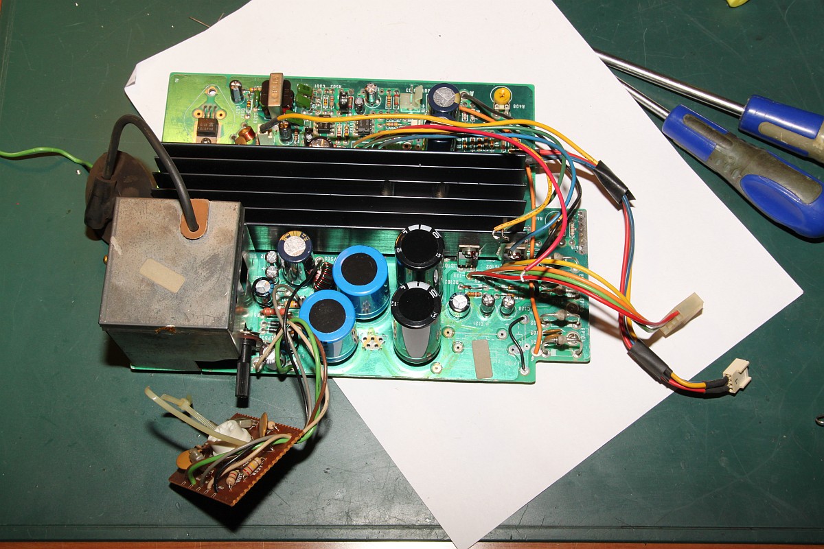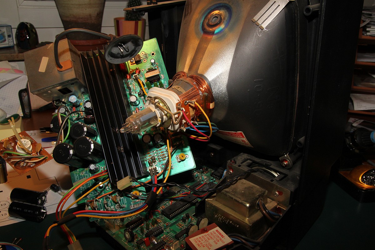 {Intention} Auch Vectrexen sind nicht vor der üblichen Austrocknung der Elektrolytkondensatoren verschont... das äußert sich dann in schlechtem Startverhalten und Problemen der Bilddarstellung. Elkos haben nur eine begrenzte Lebensdauer und besonders unter belastenden Umgebungsbedingungen (Hitze, hohe Spannung, hohe Puls-Ströme) mumifizieren diese Bauelemente innerhalb von wenigen Jahren. Die Lebensdauer eines Elkos ist im Datenblatt angegeben und beträgt zwischen 1.000h und 10.000h, je nach Hersteller, Preis oder Frechheit des China-Fakes. Diese Angabe gilt eigentlich bei den ungünstigsten erlaubten Randbedingungen... Danach hat der Elko nur noch einen Bruchteil der aufgedruckten Kapazität und die Schaltung funktioniert je nach Toleranz mehr oder weniger schlecht. Ein überdimensionierter Pufferelko im 5V-Zweig wird kaum negativ auffallen, aber ein hochbelasteter Elko im Schaltnetzteil, der aus Kostengründen schon auf Minimalkapazität ausgesucht wurde, sorgt für einen frühen Ausfall des ganzen Gerätes. Jetzt habe ich Kapazitäten frei... Sodele: Elkos erst mal raussuchen und abzählen... das sind fürchterlich viele... Zum Auslöten muss unbedingt die Netzteilplatine komplett demontiert werden, nicht alles ist gesteckt, so zum Beispiel die Ablenkspulen... Immer gut auf den dünnen Hals der Bildröhre aufpassen! Wenn da was abbricht, dann war's das! Dann endlich hält man das wertvolle Stück in Händen: Von der anderen Seite: Das Auslöten der Elkos ist eine üble Arbeit. Das Platinenmaterial taugt nichts, die Durchkontaktierungen sind extrem empfindlich und die Bohrungen bekommt man aufgrund riesiger Kupferflächen kaum frei. Bei den kleineren Elkos geht das, die vier Großen sind der Super-GAU. Und genau da passiert, was da fast immer passiert: aufgrund der konischen Beinchenform der Elko-Klopper (die sind nicht nur gelötet, sondern in viel zu kleine Vias gepresst!) sind die Durchkontaktierungen gerissen, vorgeschädigt und bleiben trotz flüssigen Lötzinns an den Beinchen hängen. Das ist kein Unvermögen, sondern dem schlechten Material geschuldet. Jetzt hilft nur der Workaround mit beidseitig verlöteten Hilfskontakten: Drei Stunden später: endlich fertig! Das mache ich nie wieder freiwillig... Eine Fixierung der hochstehenden Elkos mit Heißkleber oder Silikon empfiehlt sich - schon wegen der Langzeitstabilität. Und hier noch die komplette Elko-Liste mit Rastermaßangaben: ![]() |