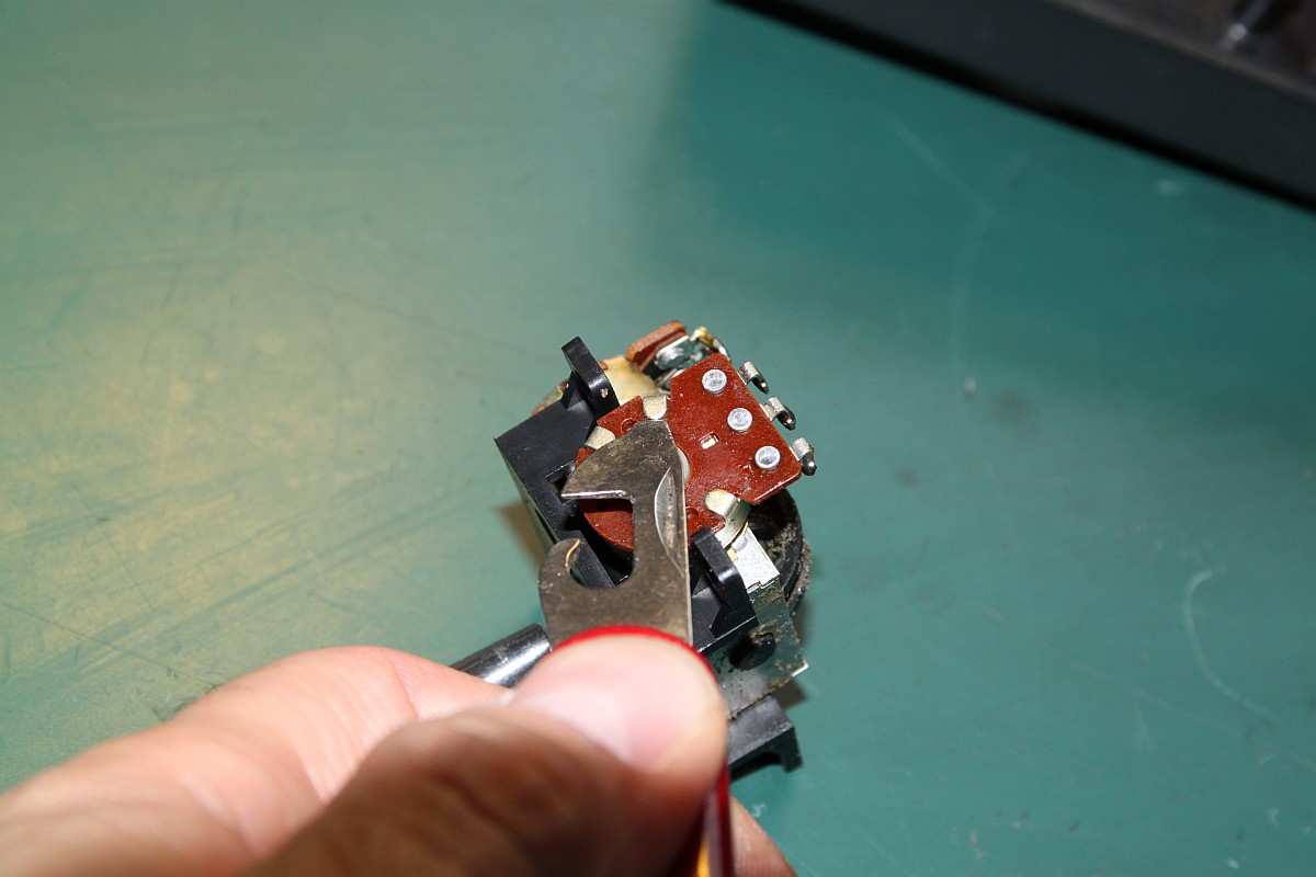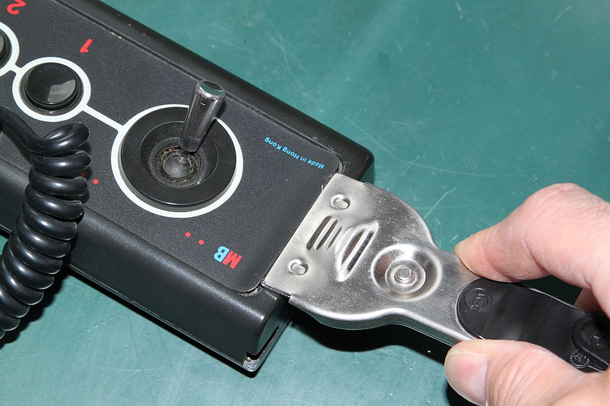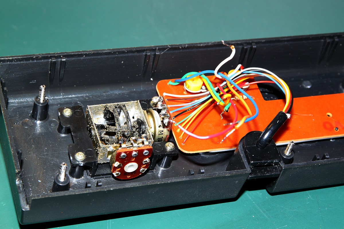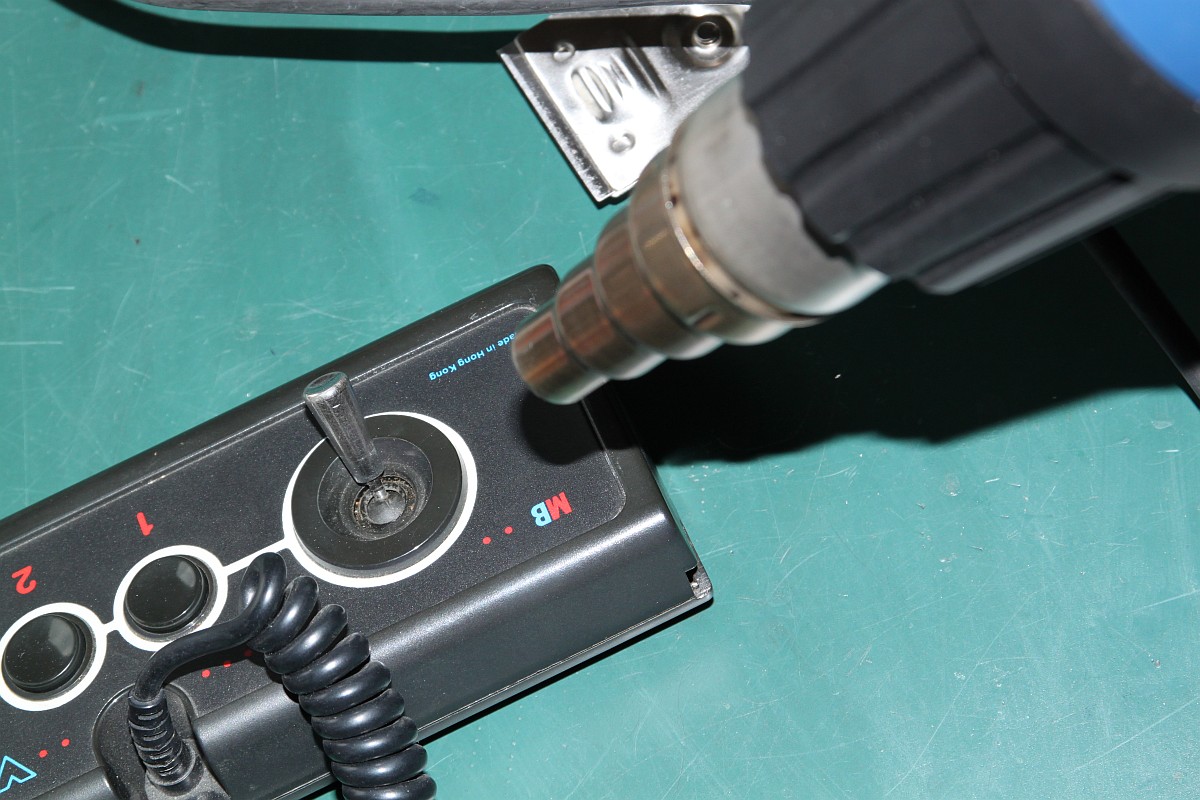 {Fehlerbeschreibung} Der Controller Joystick geht nicht in die Mittelstellung zurück. Früher oder später geschieht die bei vielen Controllern, die filigranen Federn für die Potirückstellung brechen einfach irgendwann. {Reparatur} Die erste Herausforderung besteht im Öffnen des Vectrex-Controllers: die fünf Befestigungsschrauben sind geschickt unter der aufgeklebten Dekorfolie versteckt. Unter den Gummistöpseln am Boden sind übrigens keine Schrauben verborgen, die kann man getrost dran lassen... {Dekorfolie entfernen} Die gute Nechricht ist: der Kleber unter der Dekorfolie ist wärmeemfindlich und wird schnell weich, wenn er erhitzt wird. Die schlechte Nachricht: die Kunststoffolie ist auch wärmeempfindlich. Also ist ein elektronisch temperaturgeregelter Fön ein absolutes Muss! 120°C sind perfekt. Einfach die Folie großflächig und geduldig erwärmen und dann kommt der praktische Küchenhelfer zum Einsatz. ![]() {Hebelwirkung} Die Rasierklinge vom Ceran-Schaber wird vorsichtig unter die Folie gedrückt und dann hochgehebelt. Wenn man das geschickt anstellt, so löst sich die warme Folie problemlos von der Klebeschicht, welche auf dem Controller zurückbleibt. ![]() {So geht's:} Am Ende der Prozedur haben wir die saubere und unbeschädigte Folie ohne Kleber und die Controller-Oberschale mit dem Klebstoff oben drauf. Die Klebstoffschicht sollte nicht berührt oder verschmutzt werden, weil wir sie zum Schluß noch brauchen! ![]() {Öffnen} Jetzt kommt der große Augenblick: nach vorsichtigem Aufdrehen der 5 Schrauben kann der Controller geöffnet werden... {Joystick} Hier ist nun der Analog-Joystick, zwei Potis mechanisch verbunden. Er wird von vier kleinen Schrauben gehalten, die Kabel müssen vorher abgelötet werden! Man merke sich die Kabelfarben oder halte das folgende Foto parat! ![]() {Feder} Der Übeltäter ist hier schon zu sehen: im ersten Bild das Poti mit der defekten Feder, im zweiten Bild dagegen eine intakte Feder. Man sieht hier natürlich nur die Federenden. {Poti öffnen} Also muss das Poti geöffnet werden. Vorsichtig, es besteht aus einigen empfindlichen Einzelteilen. Die Kohleschicht und die Schleifkontakte dürfen nicht beschädigt werden! Für das Aufbiegen der Laschen nimmt man am Besten ein Taschenmesser mit dünner Klinge oder einen Uhrmacherschraubendreher. ![]() {Federersatz} Gut, dass ich mir immer jeden Kleinteilemist aufhebe, man weiss ja nie, wann man mal was brauchen kann. Auch eine kleine Feder habe ich mir mal in die Kiste gelegt. Die kann mit der Zange schnell in die passende Form gebracht werden... {Zusammenbau} Jetzt kann alles wieder vorsichtig zusammen gebaut werden. Der Kleber wird am Ende wieder auf Temperatur gebracht, bis er schön klebrig wird. Dann drückt man die dekorfolie wieder auf und streicht alles fest. Am Ende sind keine Spuren mehr zu sehen, bis auf das wieder funktionstüchtige Poti... ![]() |
