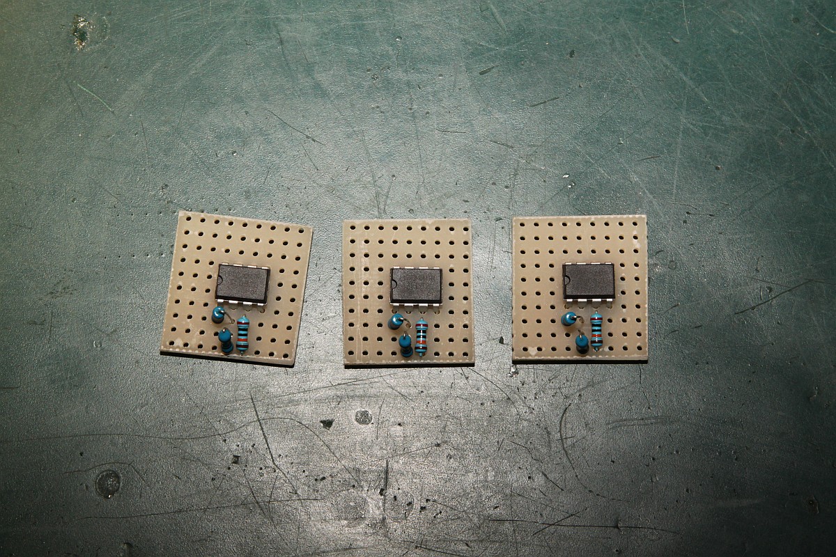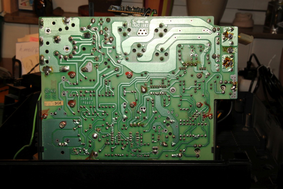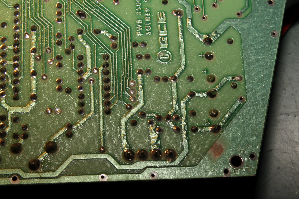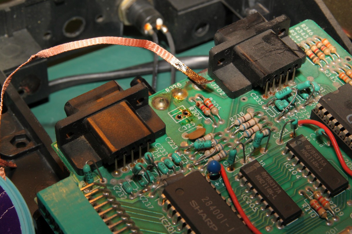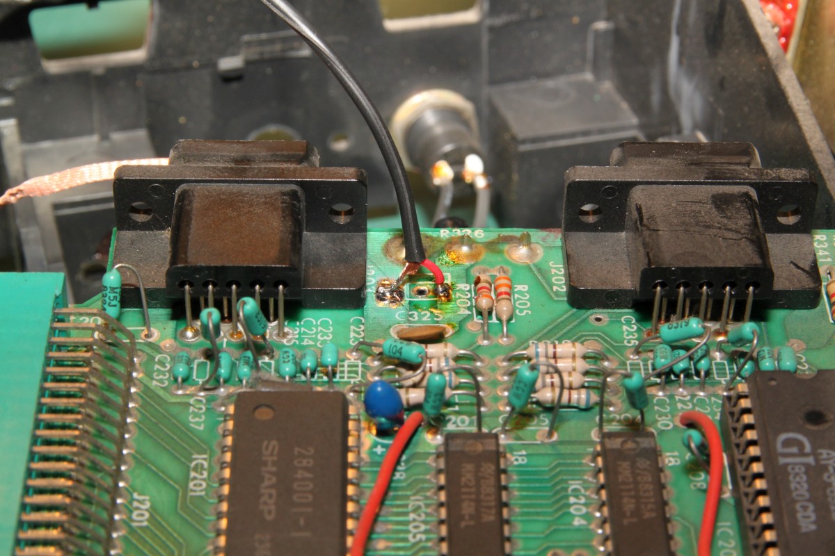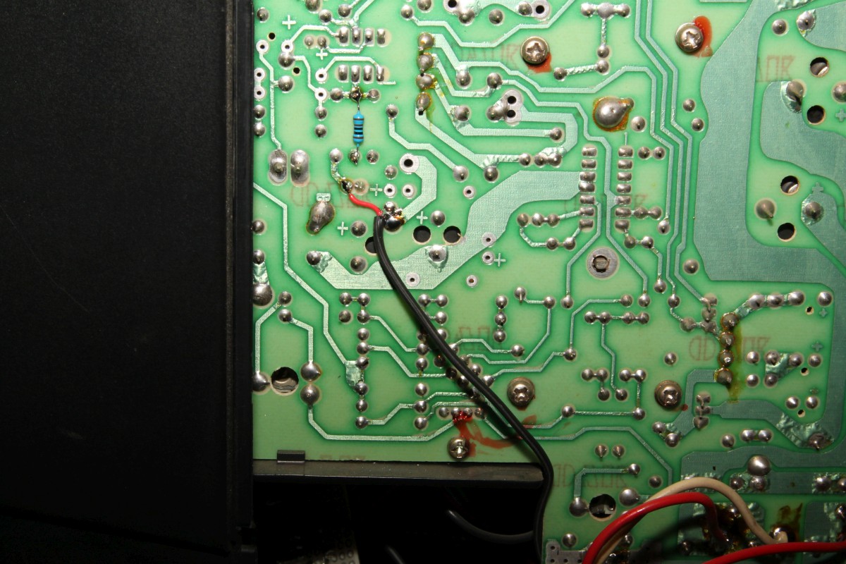 {Intention} Unter vielen anderen Patienten in meiner Klinik des Grauens stehen seit einiger Zeit auch zwei Vectrexen, deren Herrchen das permanente Brummen des Tons nicht mehr hinnehmen wollten. Endlich komme ich dazu, auch diese Verbesserung einzupflegen. Aber Vorsicht: dieser Eingriff ist aufwändig und Zeitintensiv! Man benötigt gutes Lötwerkzeug und eine ruhige Hand. Als Erstes wird der OPAMP eingelötet: die Widerstände... Kondensatoren... Kabel... Hier die Lötbrücken auf der Unterseite... Die vorbereiteten geschirmten Kabelstücke: Erster Schritt für den Einbau: Entfernen der Gehäuserückwand: Das Masseband zwischen CPU- und Netzteilplatine muss abgelötet werden! Ein Seitenblick: Von der anderen Seite: Der Drehknopf vom kombinierten Lautstärkepoti / Schalter kann abgezogen werden. Die Kontermutter entfernt man mit einer Flachzange. Die demontierte CPU-Platine... Die drei Spannungsversorgungsleitungen müssen abgelötet werden, die Position der beiden Außenanzapfungen ist austauschbar (rot), die Mittelanzapfung ist eindeutig (weiß). Jetzt ist das CPU-Board frei. Das Netzteilboard kann eingebaut bleiben. Ansicht von unten... Schritt 1: verbesserte Masse. Mit einem Glasfaserstifft wird der Lötstopplack passend entfernt und ein Kabel als Brücke gelötet. Freigekratzt... Gebrückt... Schritt 2: Anbringen des geschirmten Audiokabels. Dazu muss der vorhandene Stiftsockel ausgelötet werden. Mit Entlötlitze macht man dann die Lötaugen schön sauber: Steckerlos: Und schon ist das geschirmte Kabel dran. Ganz Vorsichtige können das Kabel an der Lötstelle mit einem Tropfen Heißkleber fixieren. Schritt 3: Ausbau des alten Kondensators am Audio-Ausgang und Einbau des Widerstands laut Anleitung auf der englischen Webseite (Links sind oben!). Bei der Gelegenheit hab ich gleich den Kondensator ersetzt, die werden ja mit den Jahren nicht besser... Der neue C: Jetzt müssen nur noch die Kabel des OP-AMP-Platinchens angelötet werden! Das Netzteil-Board, Lötseite - hier fehlt noch ein 1kOhm Widerstand: Hier muss er hin: Da ist er drin. Masse und +/- 5V findet man auf der CPU-Platine. Farbig sinnvoll gekennzeichnete Kabel erleichtern die Arbeit! Beim Zusammenbau sollte man das Reset-Kabel nicht vergessen... Jetzt wird das abgeschirmte Kabel an der Netzteil-Platine angelötet: So sieht es komplett aus: Je nach Feinheit des verwendeten abgeschirmten Kabels empfiehlt sich eine Fixierung der Lötstelle gegen Kabelbruch: Zum Schluss kann man die Platine mit einem Tropfen Heißkleber am Kunststoffgehäuse fixieren: Das war's. Es ist sehr aufwändig und zeitintensiv, aber das Ergebnis kann sich hören lassen. Der Brummton ist deutlich leiser, wenn auch nicht ganz verschwunden. Vor allem aber hängt die Lautstärke des Brummtons jetzt nicht mehr von der eingestellten Lautstärke ab. Ich finde, es hat sich gelohnt! Viel Spaß und Erfolg mit dem Nachbau, aber immer vorsichtig sein: ich übernehme keine Haftung für Schäden, die durch die Anwendung meiner Anleitung entstehen. Jeder ist selbst verantwortlich, für das, was er tut... |