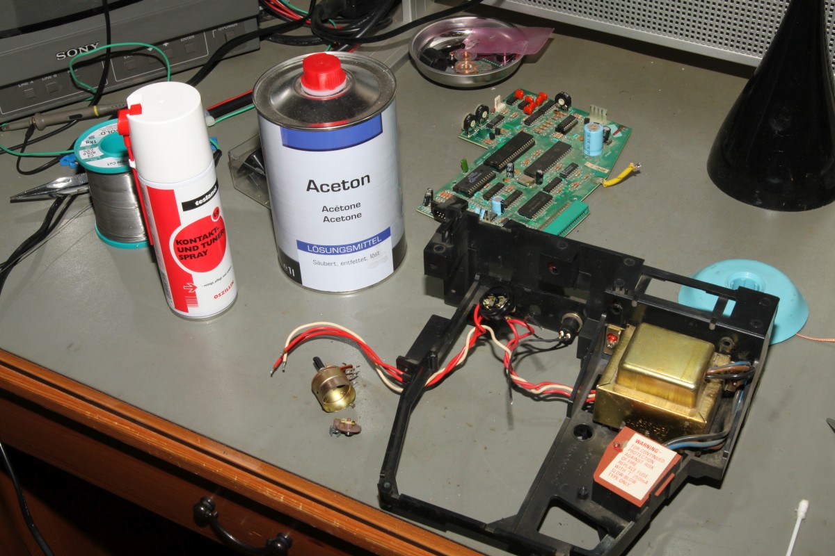 {Vectrex, die 11.} Heute mal die volle Packung - Schalter plus Controller. Dabei finde ich doch immer noch Überraschungen. Der Lautsprecher wird direkt auf dem CPU-Board angeschlossen und der Audiokram geht nicht erst an der HV-Versorgung vorbei... eine gute Idee gegen den Brumm... Wir schreiben jetzt 100 mal in unser Fleißheftchen "Nein, der Controller ist nicht geclipst, er ist geschraubt!" Wo rohe Kräfte sinnlos walten... ...da kann kein Kunststoff halten... Auch neu: ein Großteil der Gehäuseschrauben ist jetzt selbstformend - früher waren das Metallgewinde und Messingeinsätze. Na ja, die übliche Schalterprozedur ist angesagt - da hätten sie mal das Design optimieren sollen... Mein Lieblingsaceton und - auch neu: Teslanol als Schmiermittel! Nichts, was man nicht wieder gängig bekommt... Den genauen Vorgang dürft ihr euch gerne auf Youtube ansehen, einfach mal nach "Zerobrain" und "Vectrex" gurgeln! Und geht. Was auch sonst? Jetzt der vielleicht wichtigste Hinweis des Tages: "Überlassen Sie jeden Service dem Fachmann!" Mein Werkzeug: Mein Ergebnis: da sind ja die Schrauben! Poti geputzt... Knöppe geputzt... Und wieder zugemacht - jetzt hat man wieder Spaß beim Spiel. Schon fertig mit dem Fleißheftchen? ;-) ![]() |