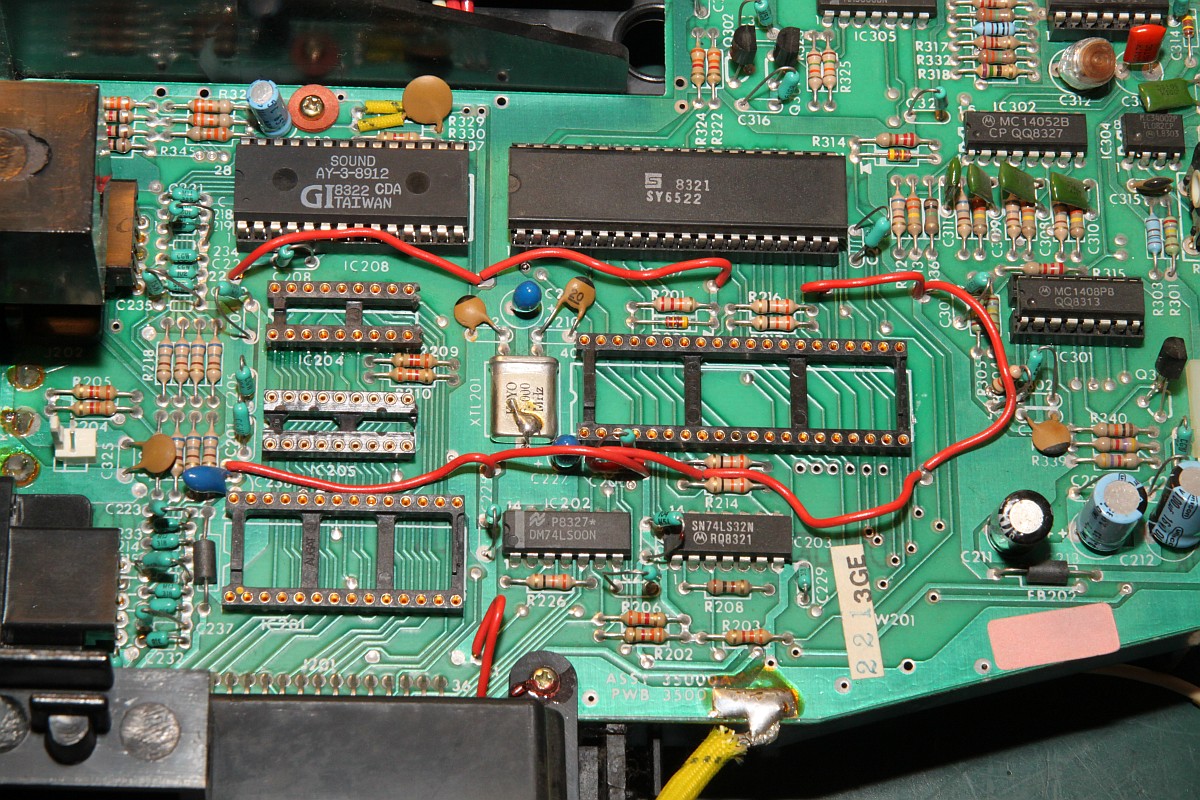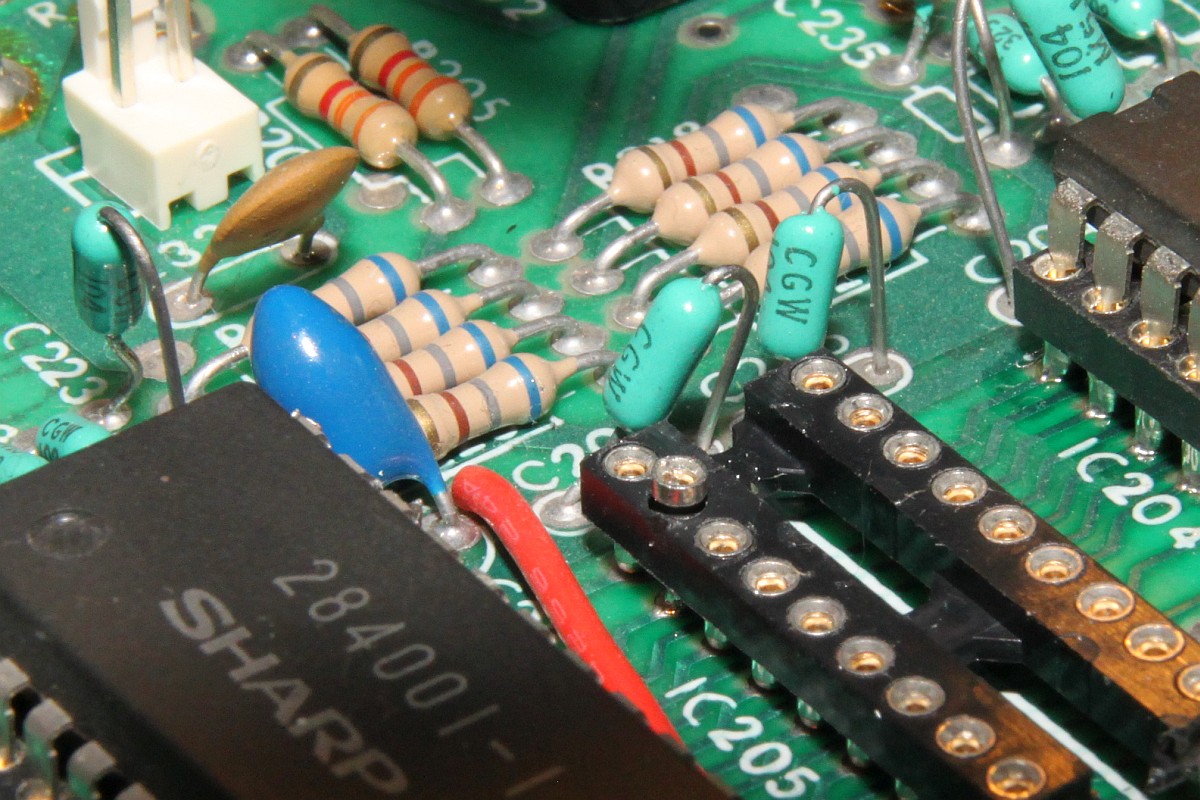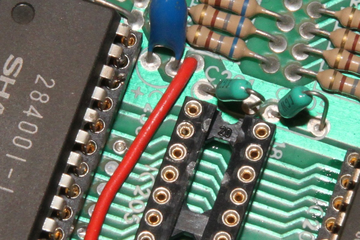 {Fehlerbeschreibung} Der Nachteil von Webseiten ist, dass verzweifelte Besitzer defekter Arcade-Hardware auf einen aufmerksam werden... So wieder mal der Besitzer einer Vectrex, die außer einem Punkt nichts weiter produzieren will... Hier mal der Patient: Der Pfeil zeigt auf den Punkt. Meine Große lernt übrigens mit. Sie ist mit auf dem Bild... ;-) Dann habe ich mir mal die Adressbusse näher angesehen, hier bei meinem funktionierenden Exemplar: ...und hier beim Patienten: Fazit: Netzteil geht, I/O geht, Prozessor scheint zu laufen, Adressbuss läuft in langweiliger Endlosschleife... Was könnte es sein? 6809 doch defekt? Programm-ROM kaputt? RAM (2114) defekt? Ich werde auf jeden Fall mal einige Teile auslöten und Sockel spendieren! An die Lötstellen der ungesockelten Bauteile kommt man gottseidank auch ohne Demontage der PCB ran. Ich sockele alle ICs, will ja nachher nicht noch mal ran. Sieht doch sauber aus. Der Lötsauger hilft sehr, die Temperaturbelastung bei der Billigplatine zu minimieren. RAM raus: Alles raus: Sockel rein: Super - am Ende hab ich alle Originalteile wieder in die Sockel gesteckt, um das Ganze noch mal auszuprobieren. Eines der RAMs hat sich so verkeilt, dass bei der erneuten Demontage ein Beinchen abgerissen ist. Im Sockel. Jetzt muss ich noch mal einen Sockel auslöten... Sowas musste ja passieren, als ob so eine Vectrex wegen der Kabel, Stecker und verschachtelten Bauweise nicht ekelig genug wäre... Hier in Pin 2: Ein guter Tip von Astro: Einzelpin heiß machen und von unten rausdrücken, parallel dazu oben mit der Pinzette packen und rausziehen. Funktioniert perfekt und der neue Sockelpin passt einwandfrei in die entsandene Lücke... Leider waren es nicht die 2114 RAMs, nächster Halt: Programm ROM. 284001 ist 2363 ist 2764... Wenn der Programmer schon sowas meldet: Datenpin nicht ansprechbar Also neu gebrannt: Und den 2764 einfach eingesetzt - ja, auf der Vectrex sind PROMs und EPROMs pinkompatibel. Auf den Cartridges nicht! Heureka! Und dann noch der übliche Kandidat - der verharzte Drehschalter: Mittels eines gefederten Schnappmechanismus werden zwei drehend gelagerte Kontakte auf zwei Anschlüsse geschoben. Die Federkraft ist gering, somit ist die Mechanik darauf angewiesen, leichtgängig zu funktionieren. Das Konstrukt ist gefettet und nach 30 Jahren hoffnungslos verharzt. Die Kontaktfahnen drehen sich immer schwerer, solange bist die Kraft nicht mehr ausreicht und einer der beiden Kontakte nicht mehr schließt. Je nachdem, welcher es ist, fällt entweder die Digitalelektronik (5V) oder die Ablenkspannung (kein Bild) aus. Daraus resultiert übrigens auch das Phänomen, dass die Vectrex erst Minuten nach dem Anschalten plötzlich angeht. Das liegt nicht an irgendwelchen schlechten Kondensatoren, wie viele meinen, sondern einzig und alleine daran, das sich die verharzten Kontaktzungen im Schneckentempo auf ihren Zielkontakt zubewegen! Das Öffenen des Schalters und die Reinigung mit Aceton / Schmierung mit Öl dauert 3 Minuten. Der Zusammenbau der Federmechanik hat wieder fast eine Stunde gedauert... ![]() |