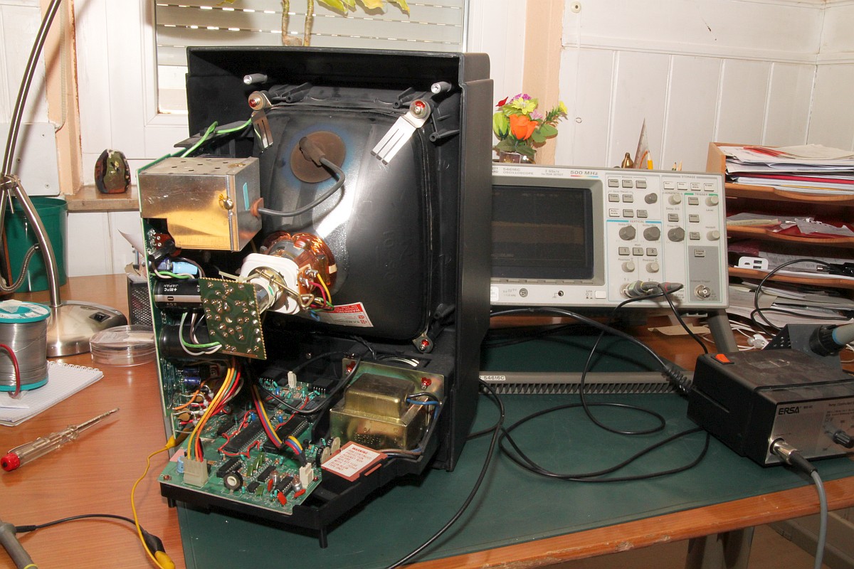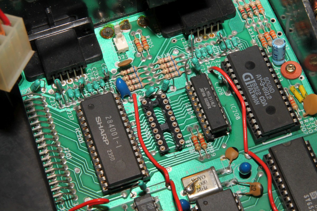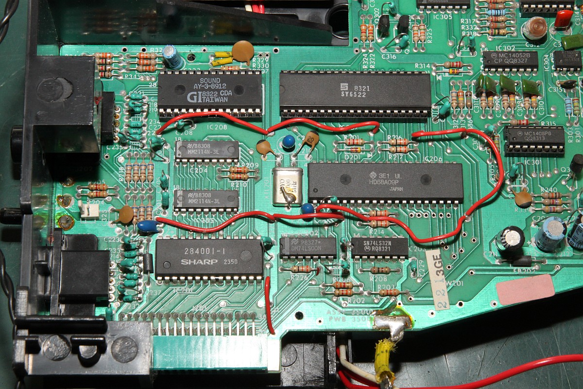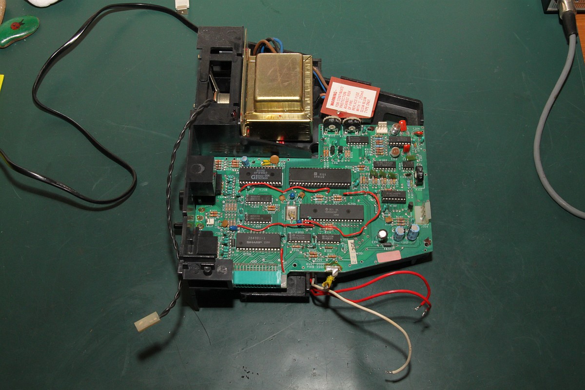 {Fehlerbeschreibung} Der Nachteil von Webseiten ist, dass verzweifelte Besitzer defekter Arcade-Hardware auf einen aufmerksam werden... So wieder mal der Besitzer einer Vectrex, die außer einem Punkt nichts weiter produzieren will... Hier mal der Patient: Der Pfeil zeigt auf den Punkt. Meine Große lernt übrigens mit. Sie ist mit auf dem Bild... ;-) Dann habe ich mir mal die Adressbusse näher angesehen, hier bei meinem funktionierenden Exemplar: ...und hier beim Patienten: Fazit: Netzteil geht, I/O geht, Prozessor scheint zu laufen, Adressbuss läuft in langweiliger Endlosschleife... Was könnte es sein? 6809 doch defekt? Programm-ROM kaputt? RAM (2114) defekt? Ich werde auf jeden Fall mal einige Teile auslöten und Sockel spendieren! An die Lötstellen der ungesockelten Bauteile kommt man gottseidank auch ohne Demontage der PCB ran. Ich sockele alle ICs, will ja nachher nicht noch mal ran. Sieht doch sauber aus. Der Lötsauger hilft sehr, die Temperaturbelastung bei der Billigplatine zu minimieren. RAM raus: Alles raus: Sockel rein: Super - am Ende hab ich alle Originalteile wieder in die Sockel gesteckt, um das Ganze noch mal auszuprobieren. Eines der RAMs hat sich so verkeilt, dass bei der erneuten Demontage ein Beinchen abgerissen ist. Im Sockel. Jetzt muss ich noch mal einen Sockel auslöten... Sowas musste ja passieren, als ob so eine Vectrex wegen der Kabel, Stecker und verschachtelten Bauweise nicht ekelig genug wäre... Hier in Pin 2: Ein guter Tip von Astro: Einzelpin heiß machen und von unten rausdrücken, parallel dazu oben mit der Pinzette packen und rausziehen. Funktioniert perfekt und der neue Sockelpin passt einwandfrei in die entsandene Lücke... Leider waren es nicht die 2114 RAMs, nächster Halt: Programm ROM. 284001 ist 2363 ist 2764... Wenn der Programmer schon sowas meldet: Datenpin nicht ansprechbar Also neu gebrannt: Und den 2764 einfach eingesetzt - ja, auf der Vectrex sind PROMs und EPROMs pinkompatibel. Auf den Cartridges nicht! Heureka! Und dann noch der übliche Kandidat - der verharzte Drehschalter: Mittels eines gefederten Schnappmechanismus werden zwei drehend gelagerte Kontakte auf zwei Anschlüsse geschoben. Die Federkraft ist gering, somit ist die Mechanik darauf angewiesen, leichtgängig zu funktionieren. Das Konstrukt ist gefettet und nach 30 Jahren hoffnungslos verharzt. Die Kontaktfahnen drehen sich immer schwerer, solange bist die Kraft nicht mehr ausreicht und einer der beiden Kontakte nicht mehr schließt. Je nachdem, welcher es ist, fällt entweder die Digitalelektronik (5V) oder die Ablenkspannung (kein Bild) aus. Daraus resultiert übrigens auch das Phänomen, dass die Vectrex erst Minuten nach dem Anschalten plötzlich angeht. Das liegt nicht an irgendwelchen schlechten Kondensatoren, wie viele meinen, sondern einzig und alleine daran, das sich die verharzten Kontaktzungen im Schneckentempo auf ihren Zielkontakt zubewegen! Das Öffenen des Schalters und die Reinigung mit Aceton / Schmierung mit Öl dauert 3 Minuten. Der Zusammenbau der Federmechanik hat wieder fast eine Stunde gedauert... ![]() |