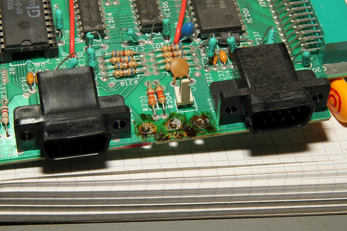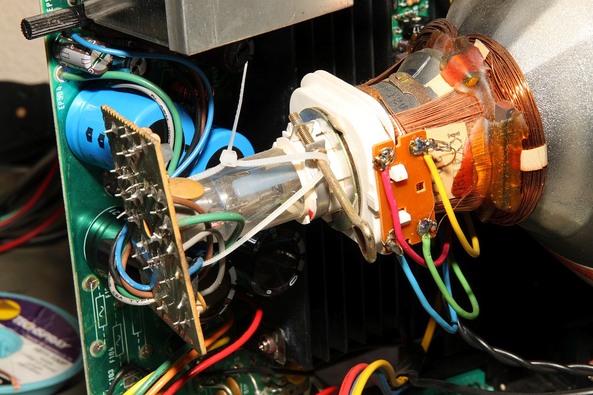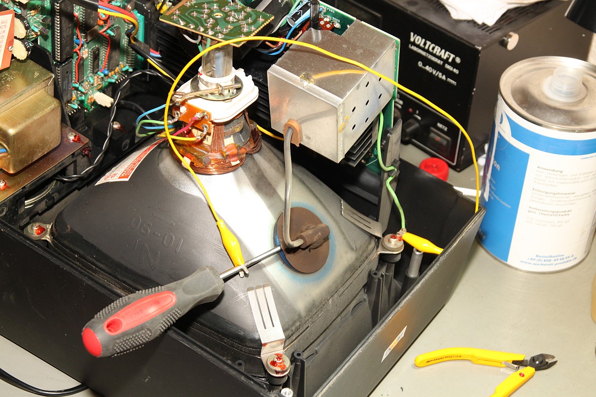 {Vectrex - die Siebte} Nachdem ich die Invasion nicht fertig bekomme, habe ich mich mal eine Vectrex zugewendet, die auch noch auf die Fertigstellung wartete. Diagnose: Schalterdefekt und einmal bitte Kondensatortausch... Diesmal wollte ich alles richtig machen, hab ja mittlerweile Übung. Und weil der eingelötete Schalter irre pfriemelig zum Zusammenbauen ist, wollte ich diesmal auch diesen auslöten und separat behandeln. Erstmal Stromversorgung ablöten: Schalter ausgelötet (mit Sauger und Entlötlitze...) Hier ist das Prachtexemplar: Zerlegt, gereinigt... ...und innerhalb von 3 Minuten wieder zusammengesetzt! Wow - das mach' ich jetzt immer so! Das CPU-Board: Der Konddensatortausch ist mühsam - Auslöten, saubersaugen und neue Kondensatoren rein - gut, dass ich dereinst von allem zu viel kaufte... Neu bestückt: ![]() Der Schalter wird sauber wieder eingelötet: Und verdrahtet. Hier empfiehlt es sich, die Kabel abzuzwicken und neu abzuisolieren... Ein vorläufiger Funktionstest: alles gut! Da fällt mir ein - Bildröhre - eben noch an gewesen - wir werden alle sterben - mimimimi... Oder aber man entlädt die Röhre einfach wie hier gezeigt: es hat leise "zap" gemacht... Die Ablenkspulen müssen abgelötet werden - Farben merken! Nee, oder? Zwei der Lötösen wurden nur durch das Zinn gehalten... Egal, das fixe ich am Ende... Die fetten Brummer muss man am vorsichtigsten auslöten - hier reißen gerne die Lötaugen mit raus, dann ist echt Ärger angesagt! Mit 400°C Lötkolben und leichtem hin und her gerüttel habe ich sie erfolgreich rausbekommen... uff... Eine Stunde später - alles getauscht: In meiner Kiste hab ich übrigens immer etwas Tüddeldraht. Mit dem kann man hier verhindern, dass man sich mühsam daran zu erinnern versucht, ob die Unterlegscheibe vor, hinter oder neben der Federscheibe lag... ![]() Der Vollständigkeit Halber habe ich noch den Kabelbinder angebracht, der den Röhrensockel auf dem Röhrenhals hält: Anschalten - laufen lassen - freuen... Es ist keine Arbeit, die wirklich Spaß macht, aber wenn alles so gut geht, wie hier, dann bin ich hinterher schon zufrieden! ![]() |